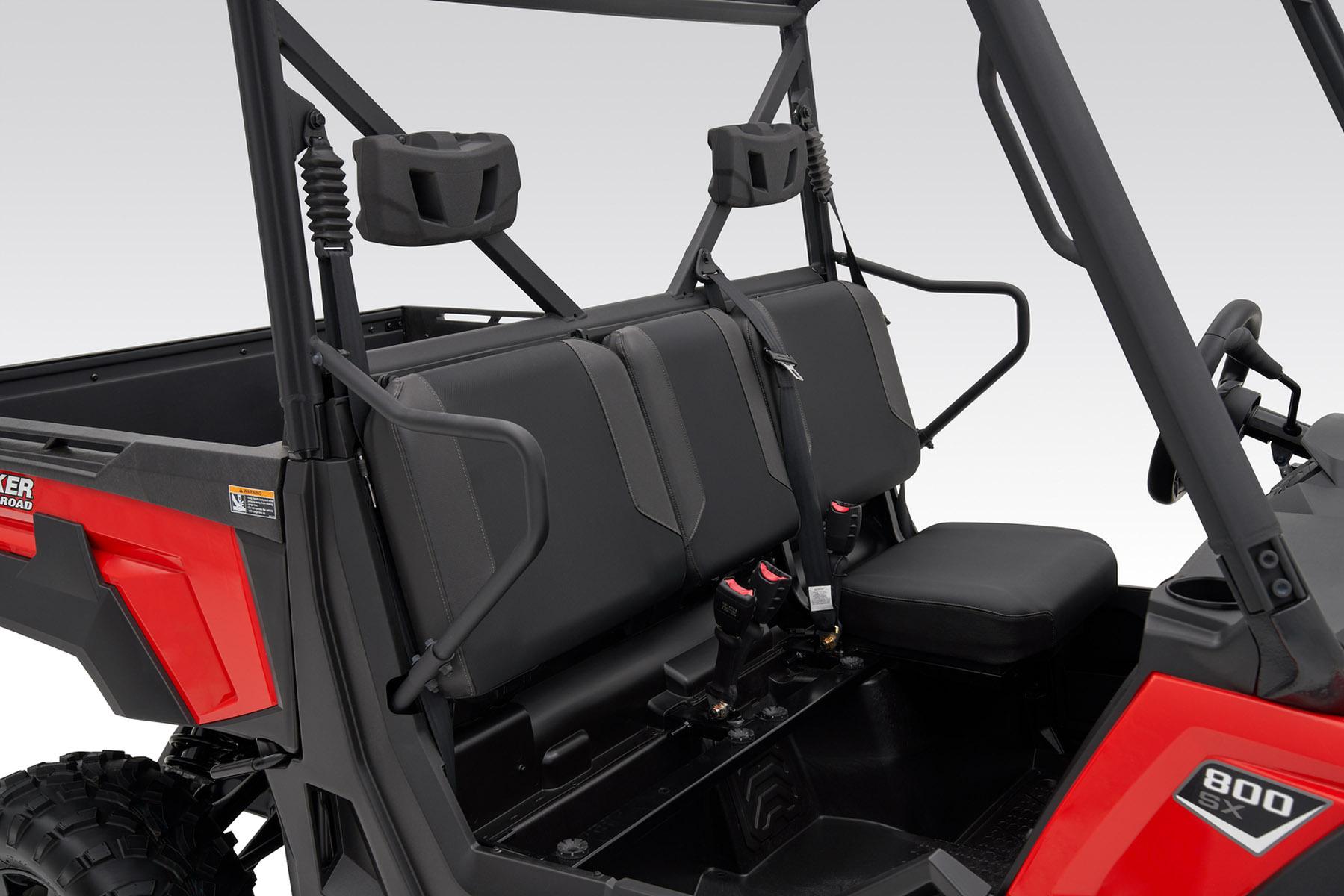 Relentless power and class-leading quietness define the TRACKER OFF ROAD 800 SX. This combination is unmatched among the competition and redefines the side-by-side experience with elevated comfort and capability. The 50HP engine features an enhanced intake and exhaust for maximum output and instant acceleration. It’s the hardest-working side-by-side you’ll never hear coming.