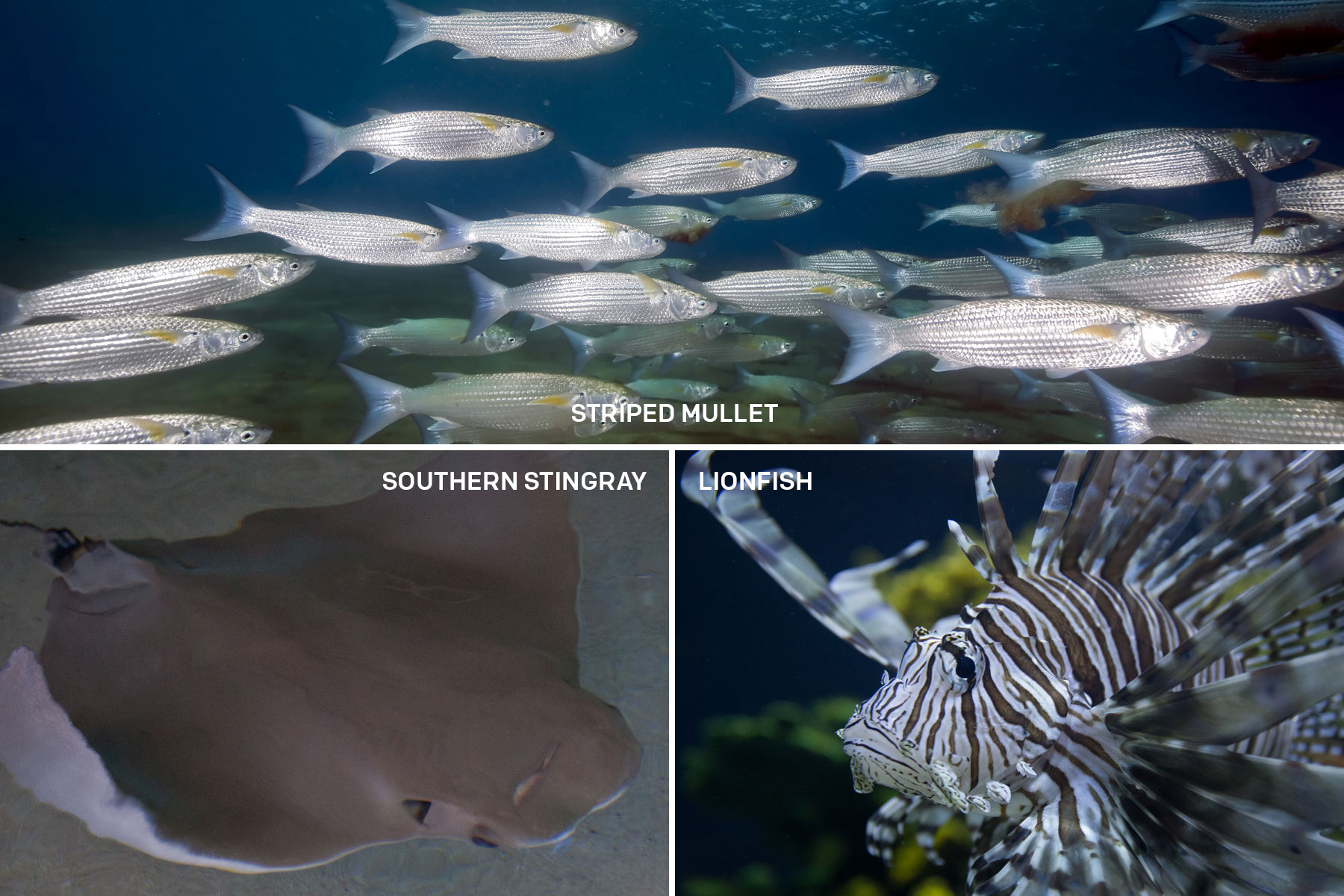 Striped Mulet, Southern Sting Ray, Lion Fish