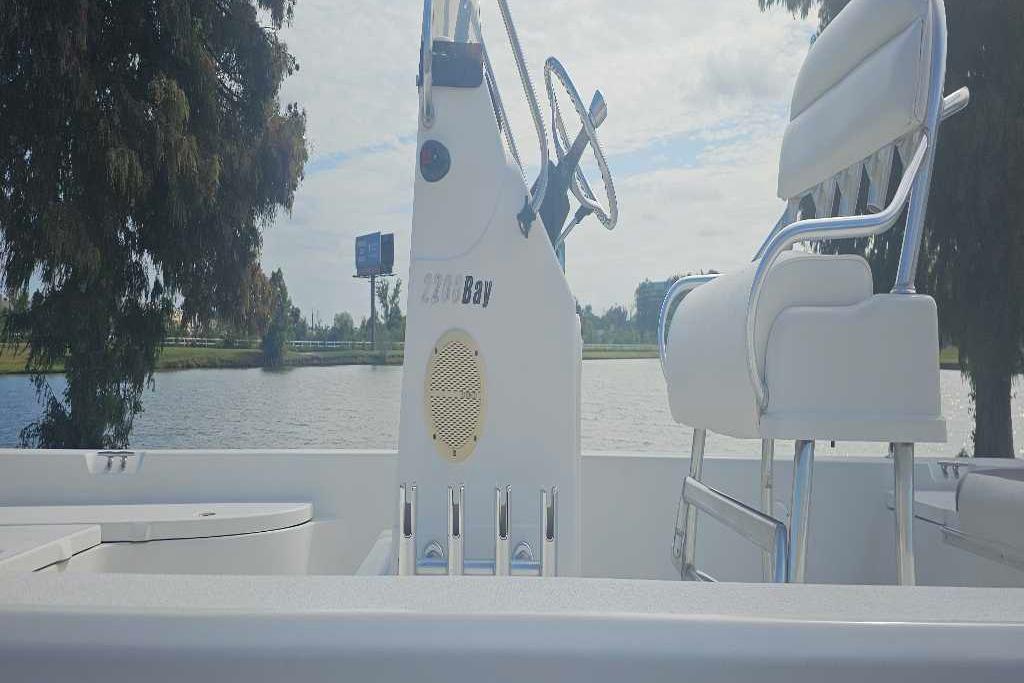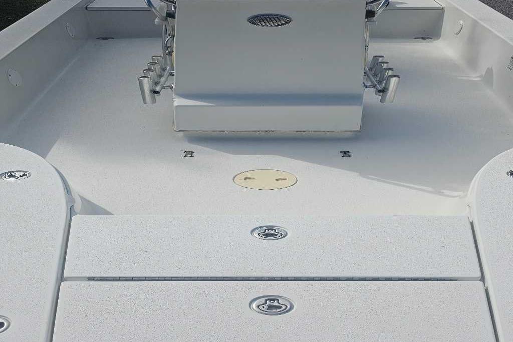 Welcome to the accelerated standards of the 2200 Bay Ranger. Built for the most demanding redfish anglers, the 2200 is equally at home chasing speckled trout on family outings. Designed with a smaller console and center-mounted trolling motor batteries, the balanced interior delivers an abundance of storage and plenty of additional space for working fish bow to stern. The highly maneuverable hull design also includes a raised bow for an impressively dry ride in rough water. Up front, an aerated well provides a convenient location for crabs and other bait. Cast net storage is positioned just aft of the console and a fold-down console rail allows the boat to easily access garages with lower ceilings and openings. Elsewhere, a raised anchor locker centers an elevated section of the front deck and rod storage is positioned throughout the layout.