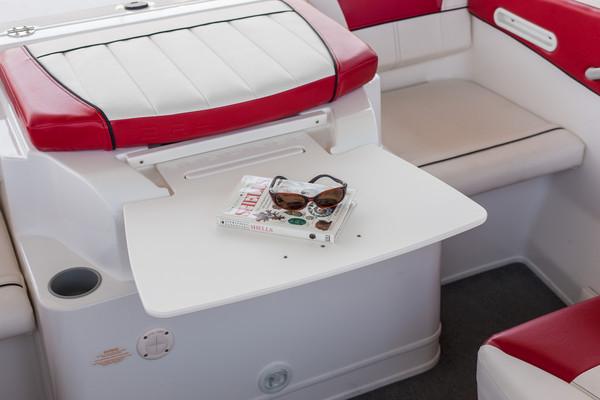 • Innovative motor box table on the Standard Seating Configuration affords a stable place for family lunch on the water.