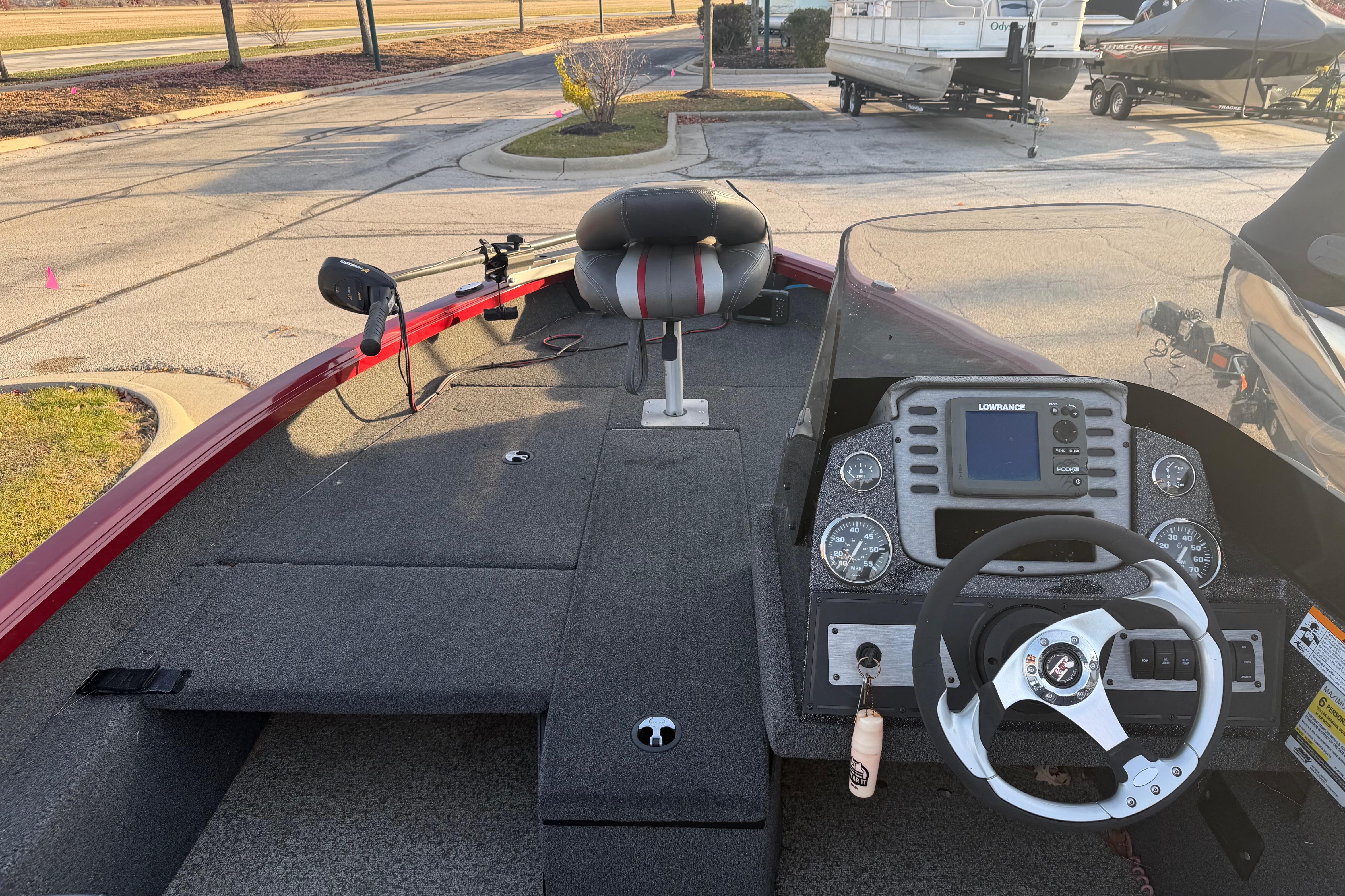 Stretching 16' 8" in length with a 92" beam, the VS1680 is ideally-sized for bigger waters and smaller tow vehicles. The all-welded, aluminum design touts a wide open interior with a world of rod and gear storage. Up front, a Minn Kota® trolling motor along with a remote bow panel and huge center rod box reinforce the 1680's focus on family and fishing. Inside the roomy cockpit, hand-fitted upholstery includes driver slide/swivel controls and heavy duty pedestals. The helm is rigged with speed, tach, fuel, and trim gauges as well as Lowrance® electronics and easy touch switches.