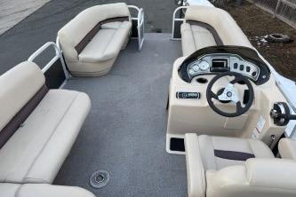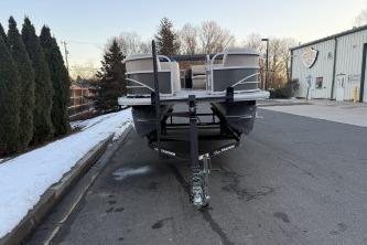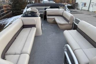Introducing the 2017 Sun Tracker Party Barge 20 DLX, a delightful pontoon boat designed for memorable outings on the water. With an overall length of 21.9 feet, this used vessel offers ample space for relaxation and entertainment. Crafted from durable aluminum, its pontoon hull shape ensures stability and smooth navigation, making it perfect for family gatherings or leisurely cruises. Powered by a reliable 40 hp Mercury outboard engine with only 249 hours of use, this boat promises dependable performance and enjoyment. The Party Barge is equipped with essential features that enhance your boating experience, providing a comfortable and inviting atmosphere for all aboard. Whether you're fishing, sunbathing, or enjoying a picnic, this pontoon boat is your ticket to endless fun on the water. Embrace the joys of boating with the Sun Tracker Party Barge 20 DLX!