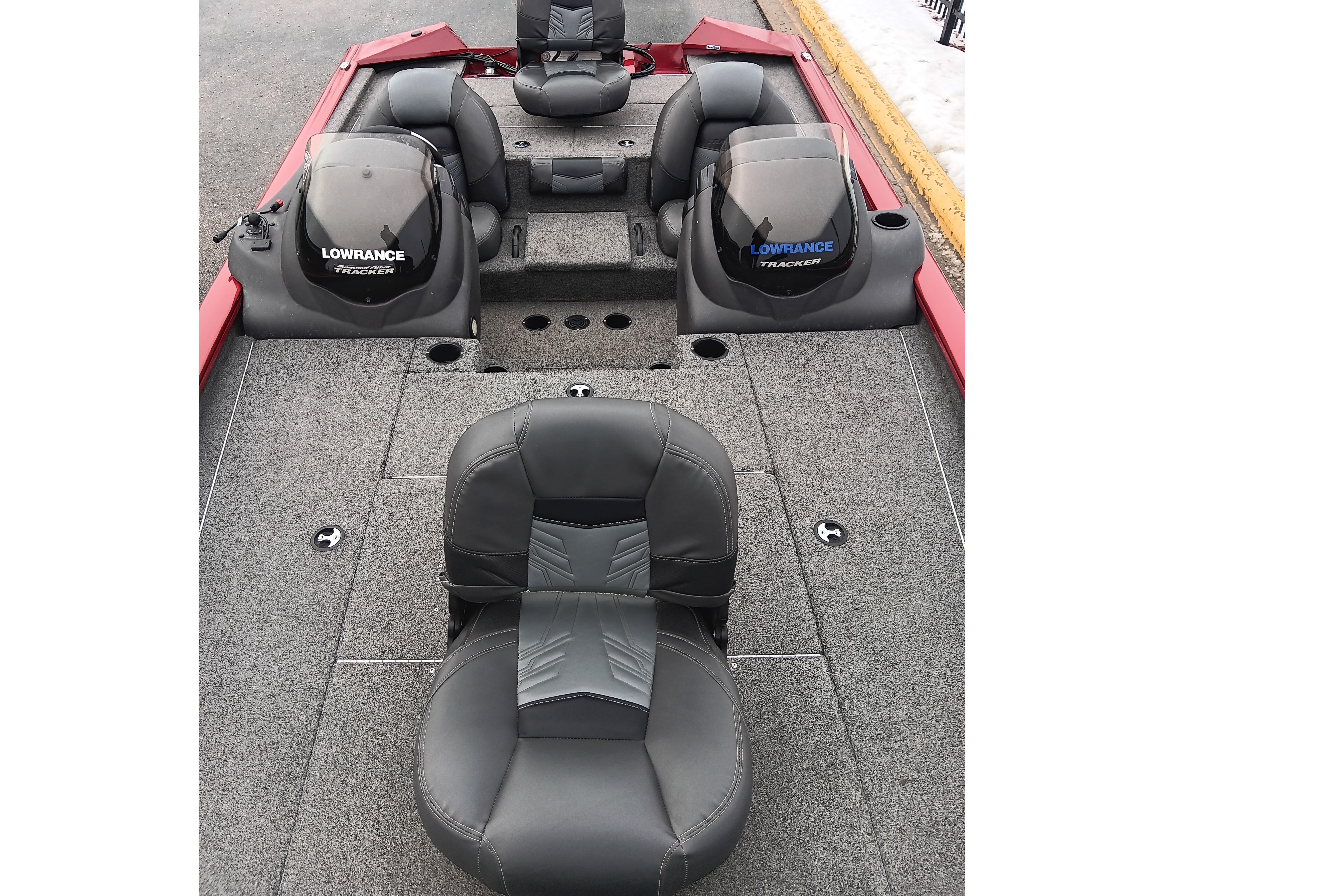 The TRACKER® Pro Team™ 195 TXW Tournament Edition includes a package of premium upgrades to help you compete and win, including 2 Lowrance® HOOK2 5 Combo color fishfinders, a Minn Kota® 24V trolling motor, an extra battery, an upgraded charger, a bow trailer step and grab handle, and custom aluminum wheels with matching spare. It's also loaded with storage for all your tournament gear, including a new deck layout—port and starboard 7’ rod boxes with tip organizers, a giant center bow tackle box and bag organizer, a cooler in the step up to the bow deck flanked by 2 drink holders. It comes standard with a Mercury® outboard and features our Revolution™ Mod V hull w/Smooth Ride Guarantee™. And it’s backed by the TRACKER Promise—the best factory warranty in aluminum boats.