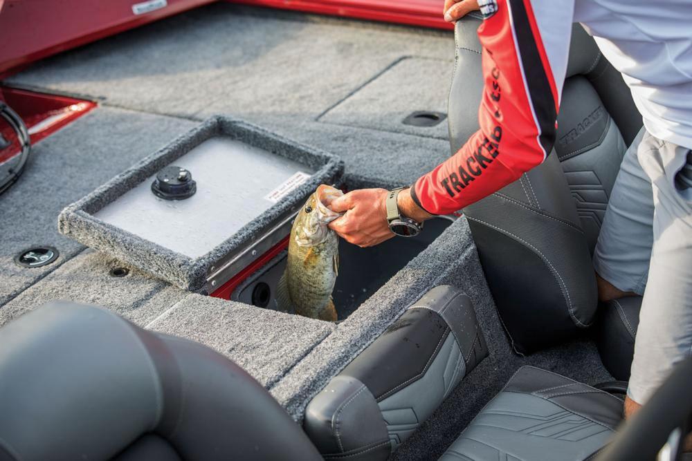 • Lighted aft 27-gal. (102 L) aerated livewell w/divider, timer, recirculator, pump-out system & dual overflow drain