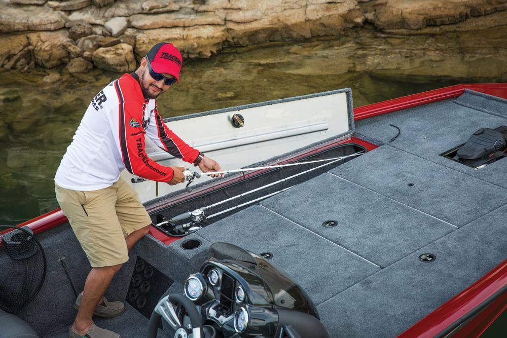 • Redesigned bow deck w/NEW port & starboard 8’ (2.44 m) rod boxes w/tip tubes & center tackle organizer