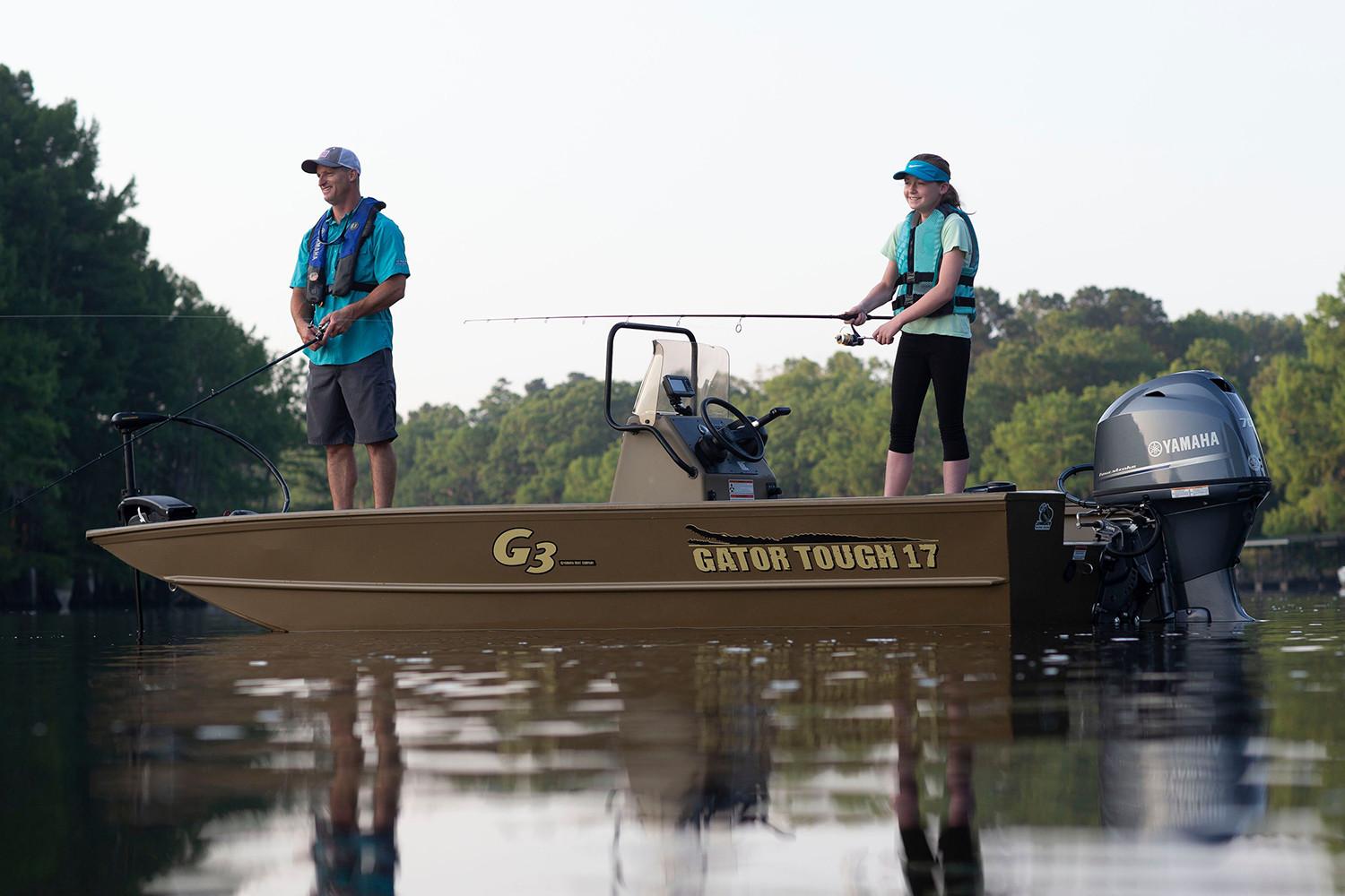 The Gator Tough™ 17’ Center Console provides a superior choice for the angler without boundaries; right-sized for river or lake, the exceptional hull design, with 10 degree deadrise and shallow V entry line, creates a quick time to plane and a smooth, fuel-efficient ride. It all adds up to more performance, with less horsepower.