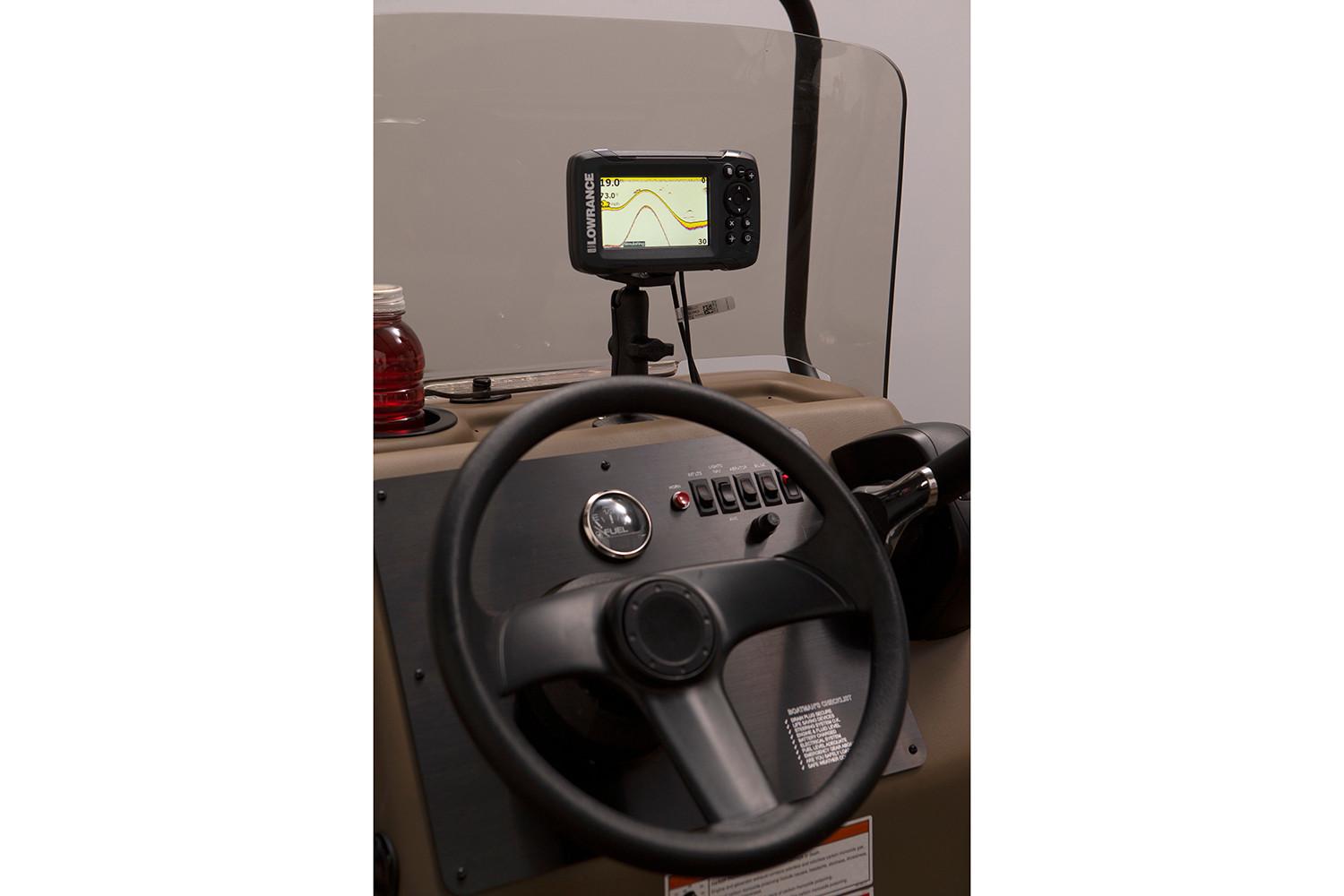 Features include canvas T-top with rod holders, Minn Kota Edge trolling motor, Helix 5 and Helix 7 fish finders. Very nice boat!
