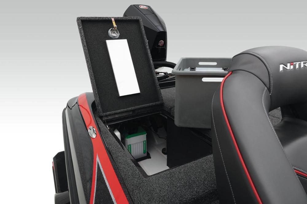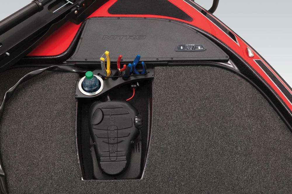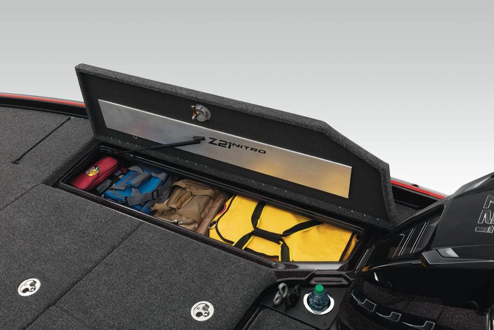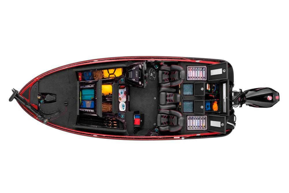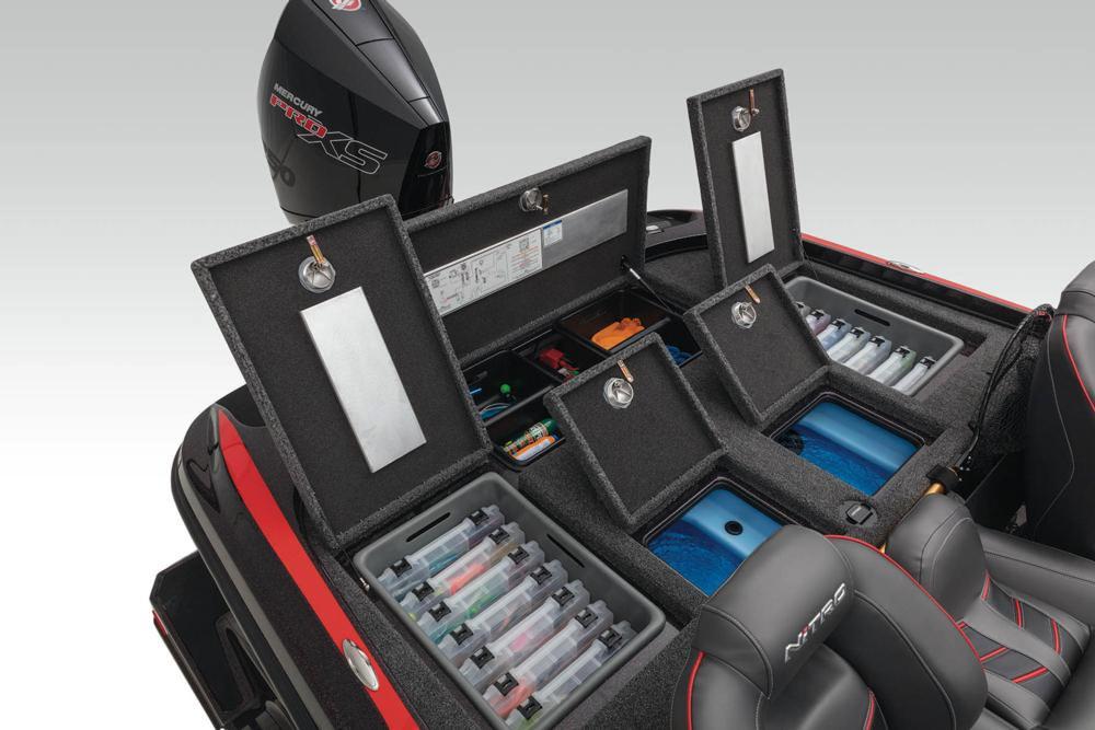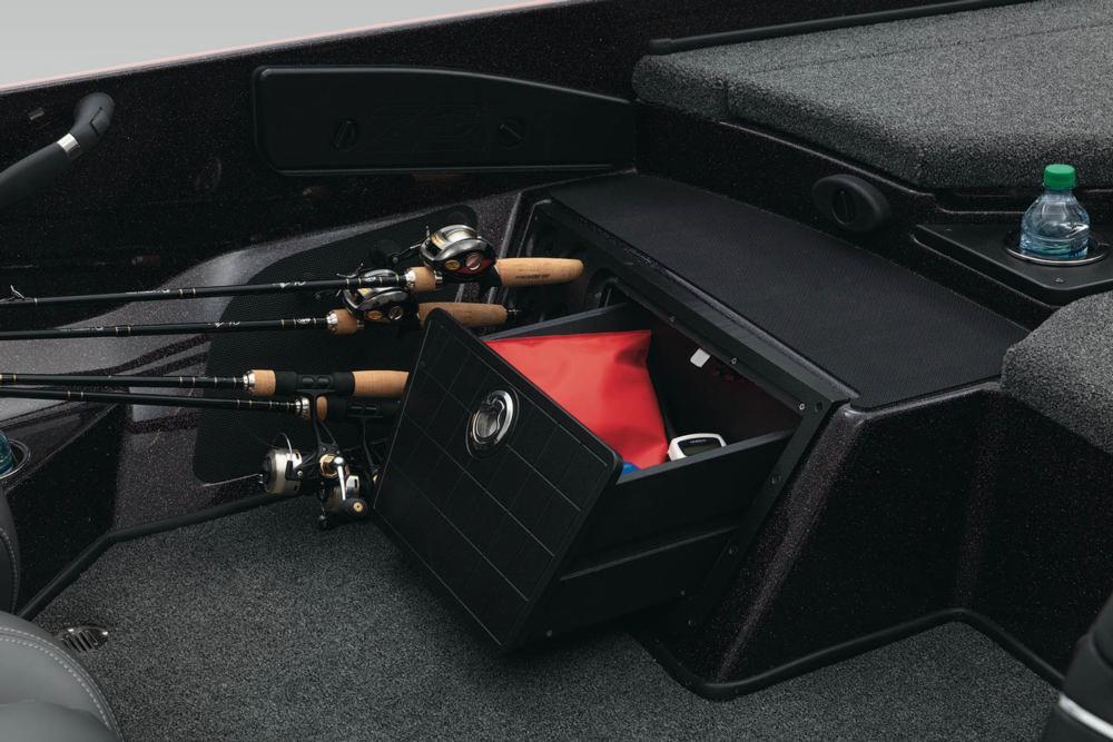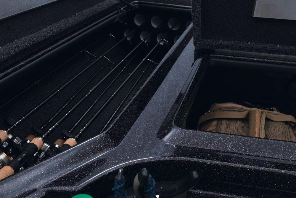 • Oversized lockable bow center storage locker w/Tackle Management System