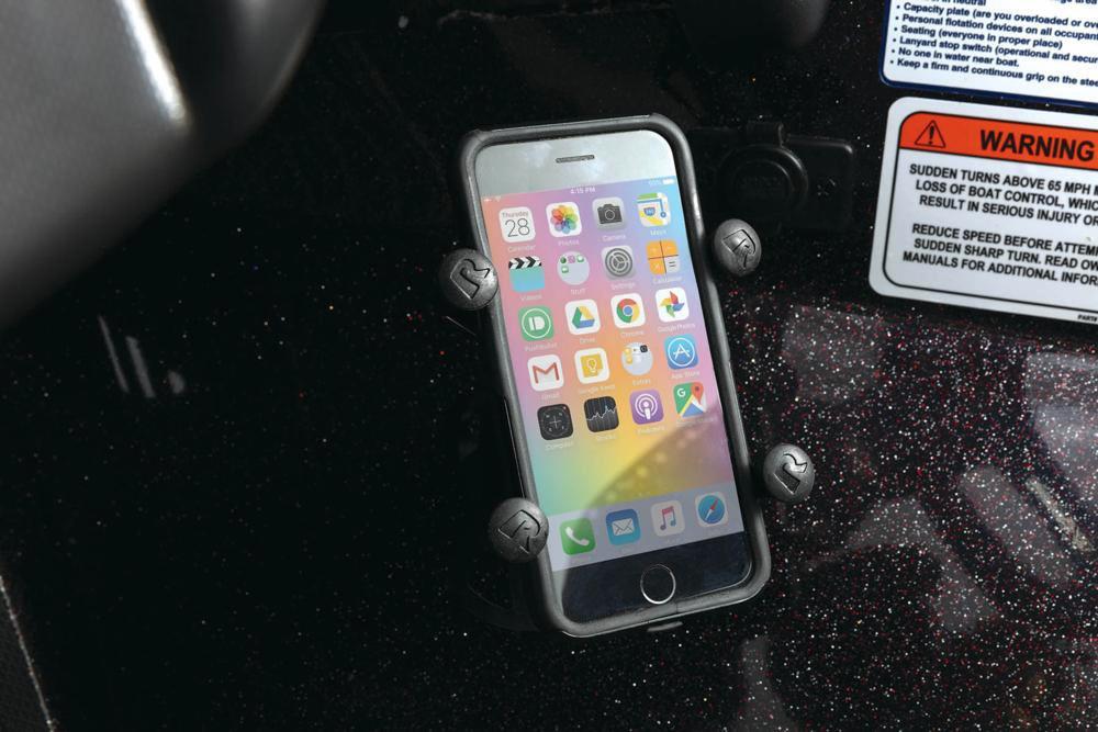 • Below-console RAM® X-Grip® phone holder & 12V outlet