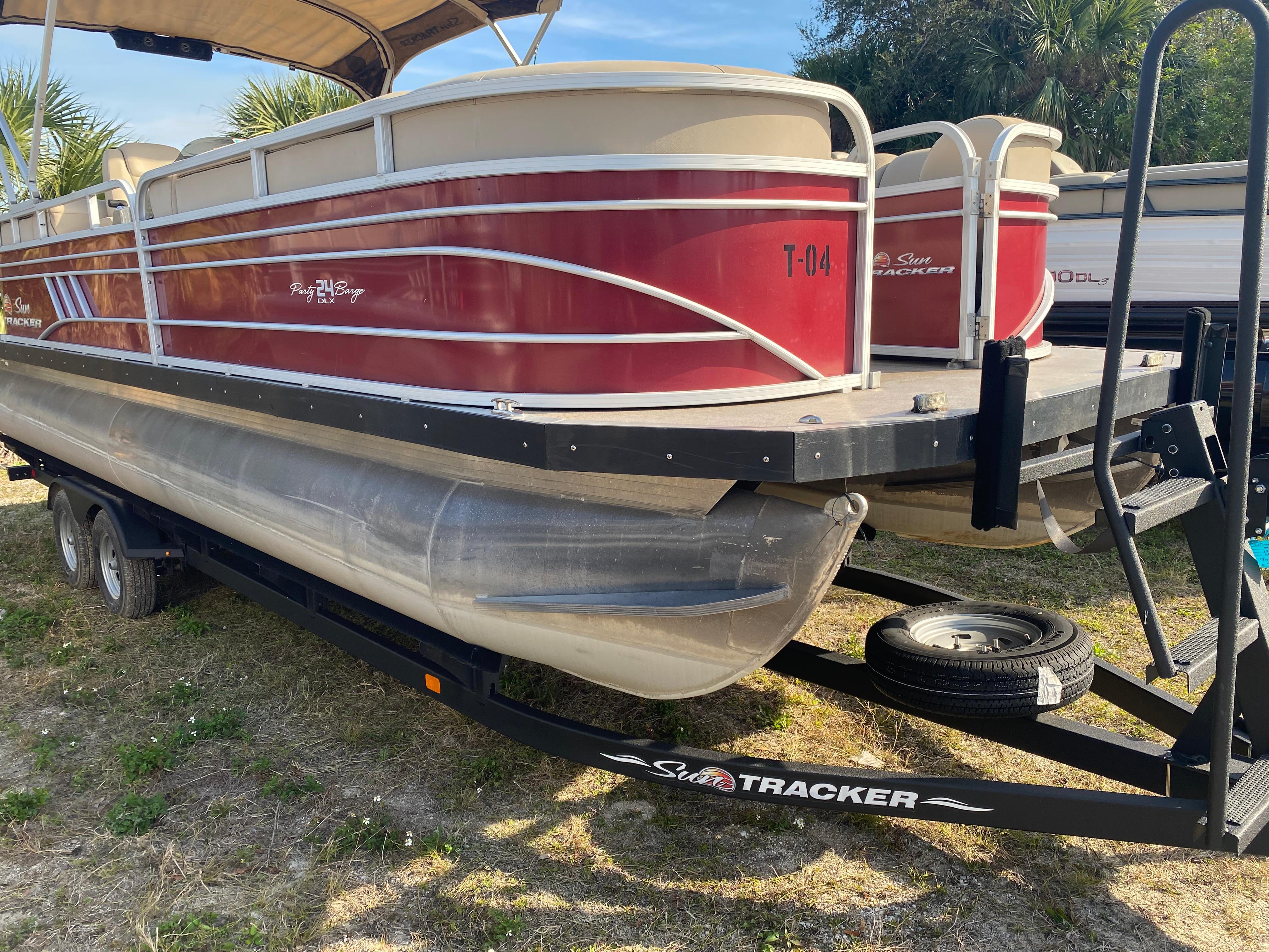 The PARTY BARGE® 24 DLX comes with a 115hp Mercury® ELPT CT FourStroke outboard motor and has a recommended maximum 150hp rating.