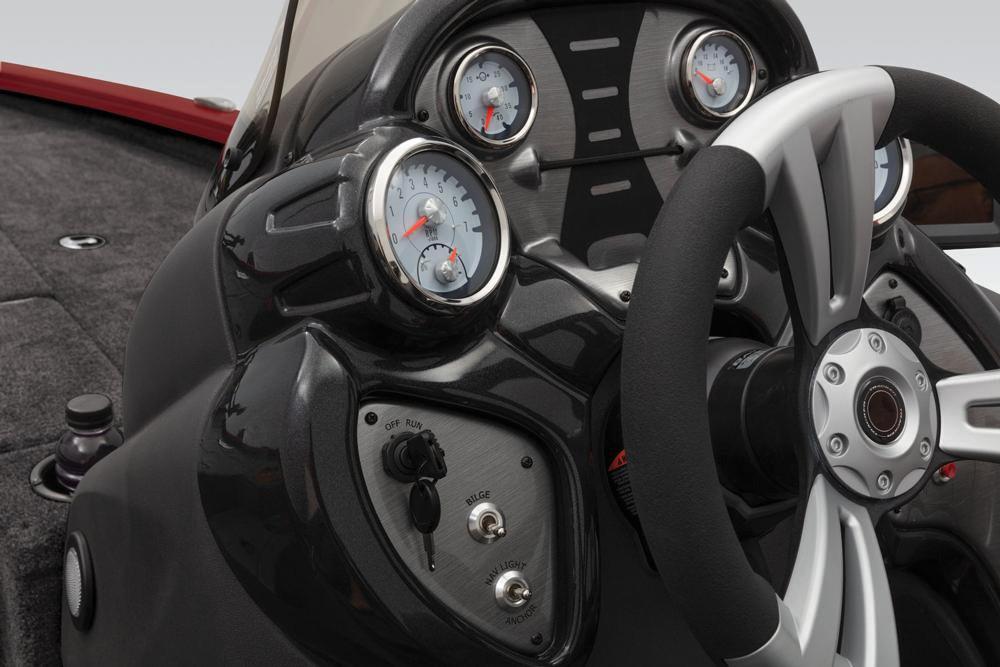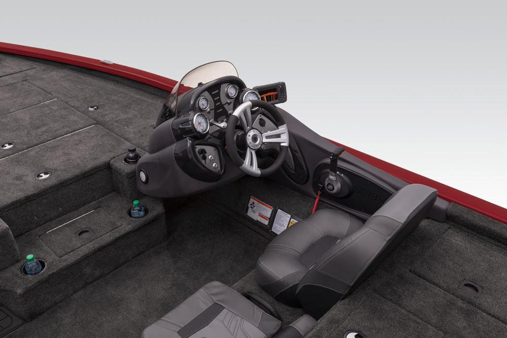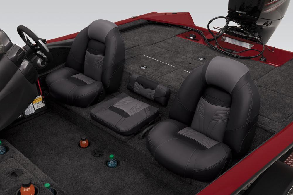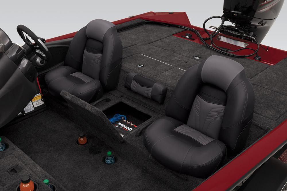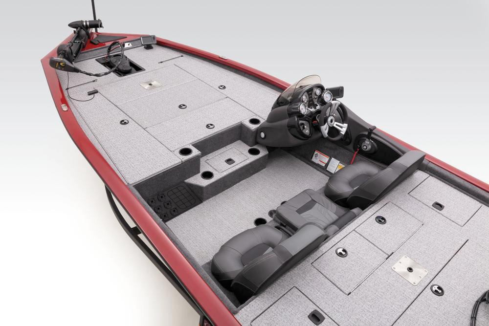 • Tournament-style 39-sq.-ft. (3.62-sq.-m) elevated bow deck w/oversized dual rod boxes & center tackle organizer