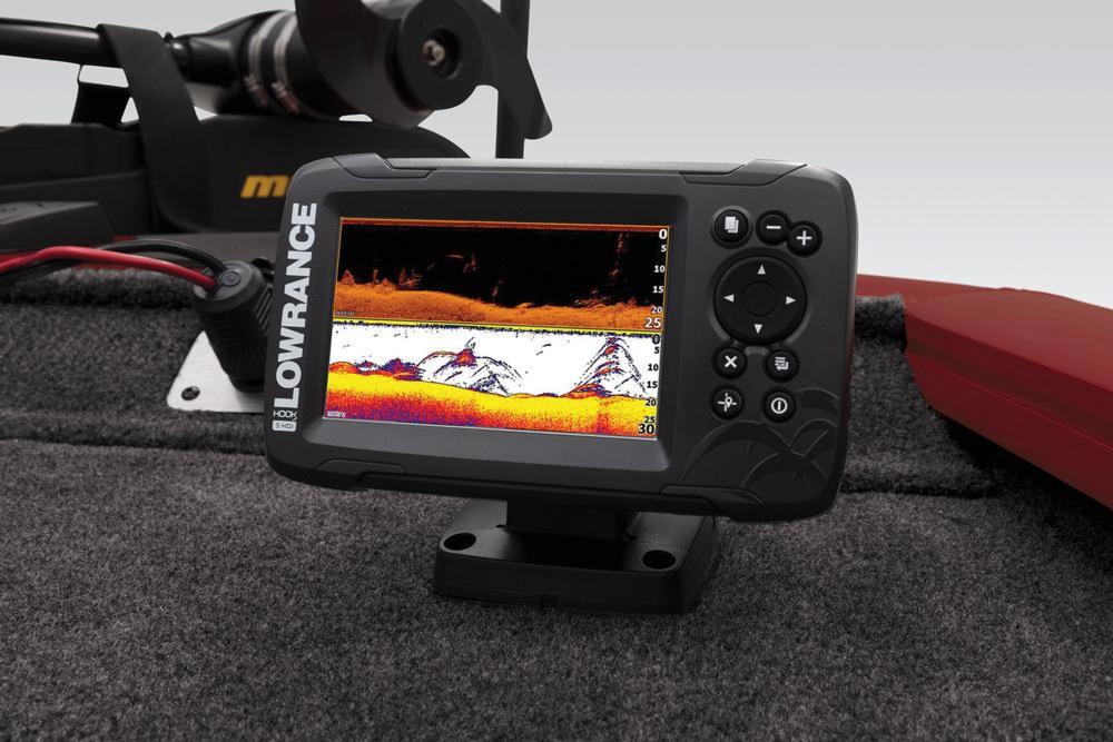 • Bow Lowrance® HOOK2 5 Combo swivel color fishfinder w/SplitShot™ transducer & GPS