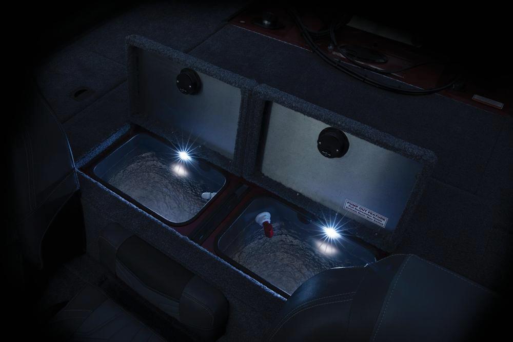 • Lighted aft 27-gal. (102.21 L) aerated livewell w/divider, timer, recirculator, pump-out system & dual overflow drain