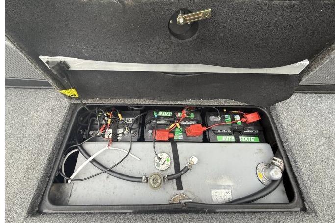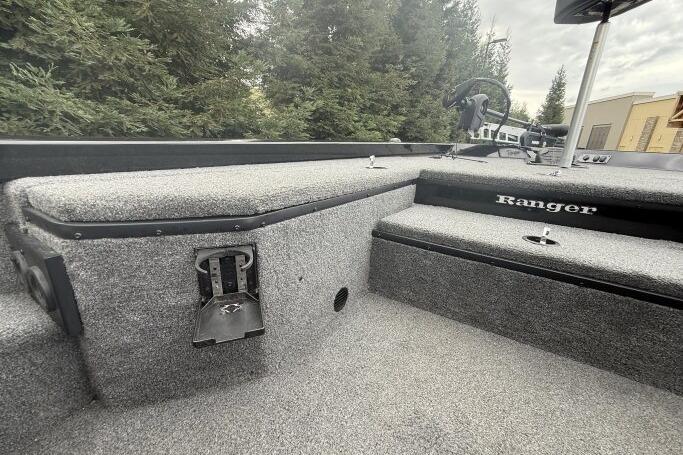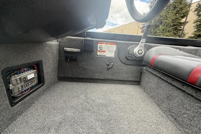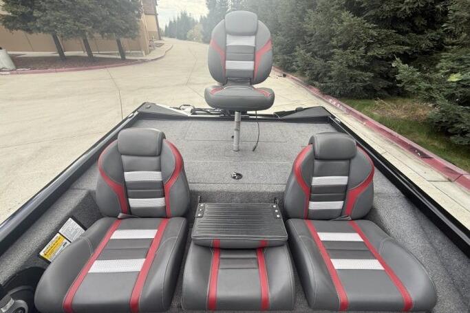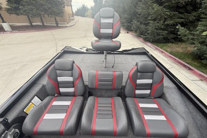 • Custom fitted marine upholstery- driver/passenger bucket seating w/ center fold down & two matching fishing seats