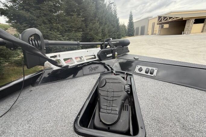 • Custom fiberglass console w/ flush-mounted depthfinder, tach, speed, fuel, trim gauge & easy touch switching