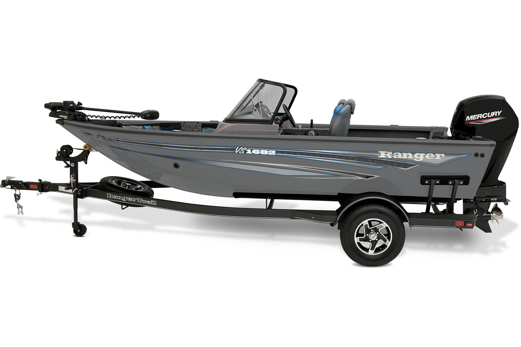 The Ranger® VS1682 SC Angler is designed to tame swells and rough water like a big deep V, but in a shorter size that’s long on legendary Ranger quality. The VS1682 SC Angler has a wealth of features built in from the factory that offer unmatched on-the-water comfort, control and performance. Power trim at the console and bow, hydraulic steering, aerated livewells fore and aft and a single fiberglass console are just a few of the standard niceties. From there, a host of options are available to precisely suit your needs. Regardless of how you outfit your VS1682 SC Angler, the wide beam offers rock-like stability and ample workspace to play fish and rig gear while the deeper V hull is designed to keep you dry and riding smooth in big water. Cavernous storage for tackle and huge wells for live bait ensure that you won’t ever be short on gear, while a 25-gallon fuel tank will keep you trolling for hours. Rated up to 115 horsepower, the VS1682 SC Angler punches well above its weight.