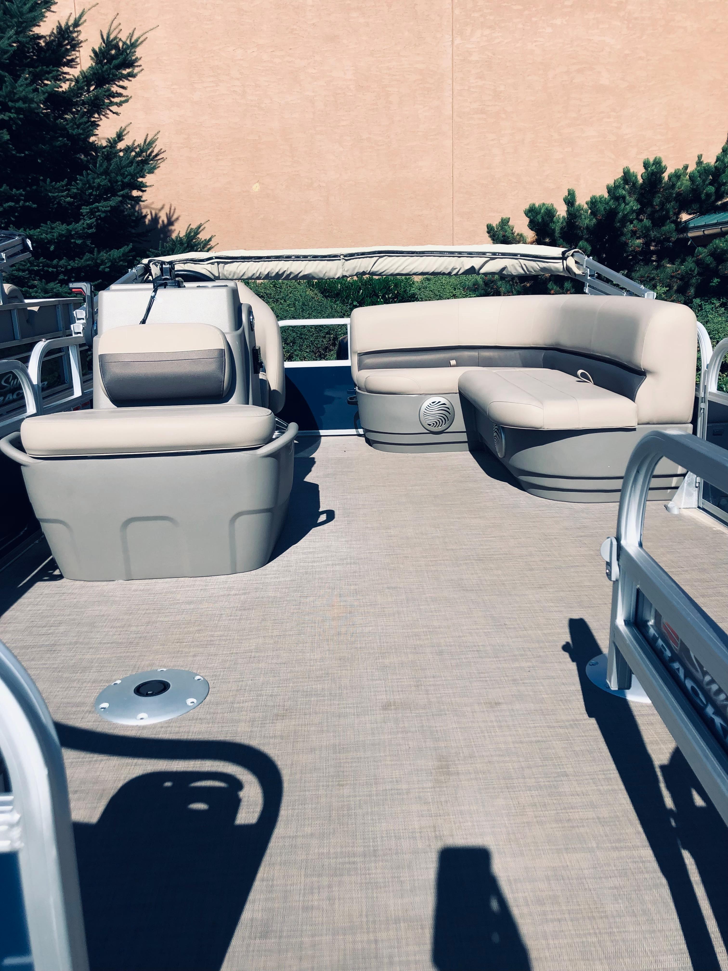 In addition, the deck is 16' long and 8' wide, providing a spacious, stable platform for a variety of activities. Fishing? Dual bow fishing chairs provide comfortable spots to cast away the day, and a forward-console livewell/seat is perfect for placing your keepers. There is also rod storage at the console.