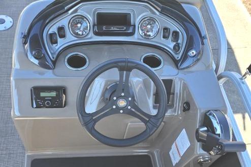 With three 26” logs with lifting strakes and factory-installed underpinning, this pontoon boat can handle up to 200 horsepower—extra power for cruising and pulling a tuber! That rear-facing lounge provides the perfect place for a couple of spotters to enjoy the action.