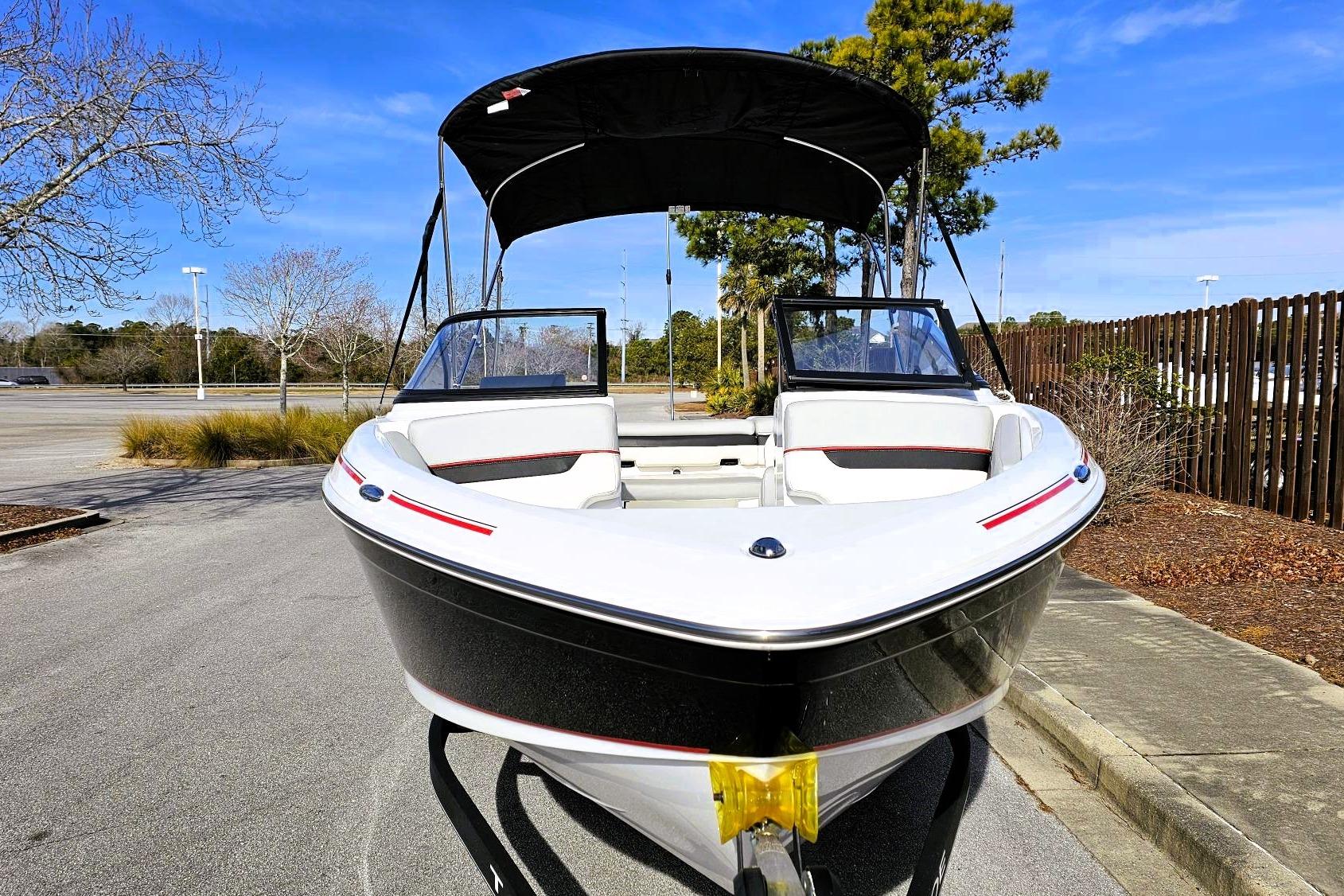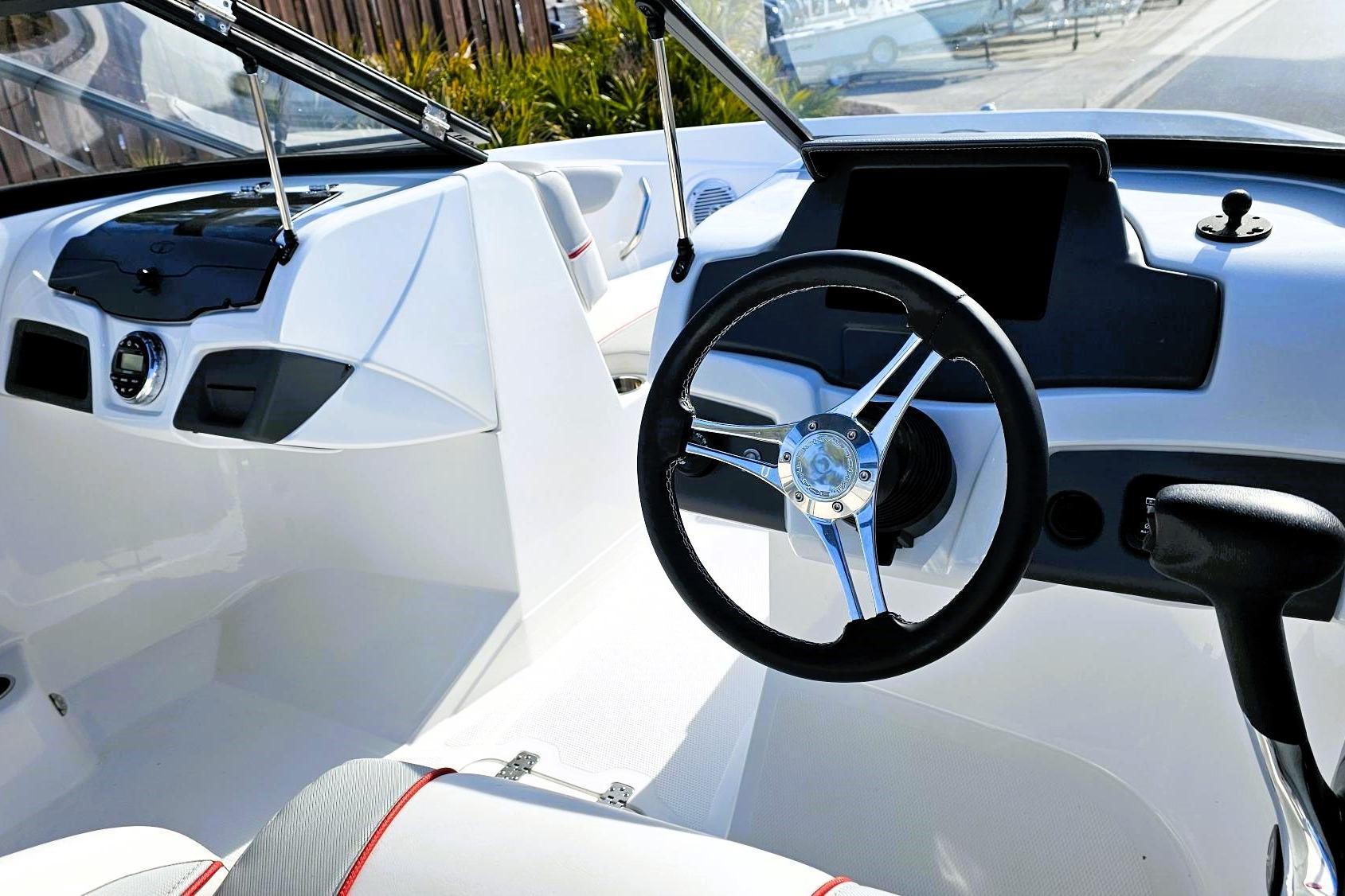 BIMINI TOP WITH CHANGING ROOM, STAINLESS STEEL PROPELLER, TILT STEERING, MERCURY SMART CRTAFT CONNECT MOBILE.