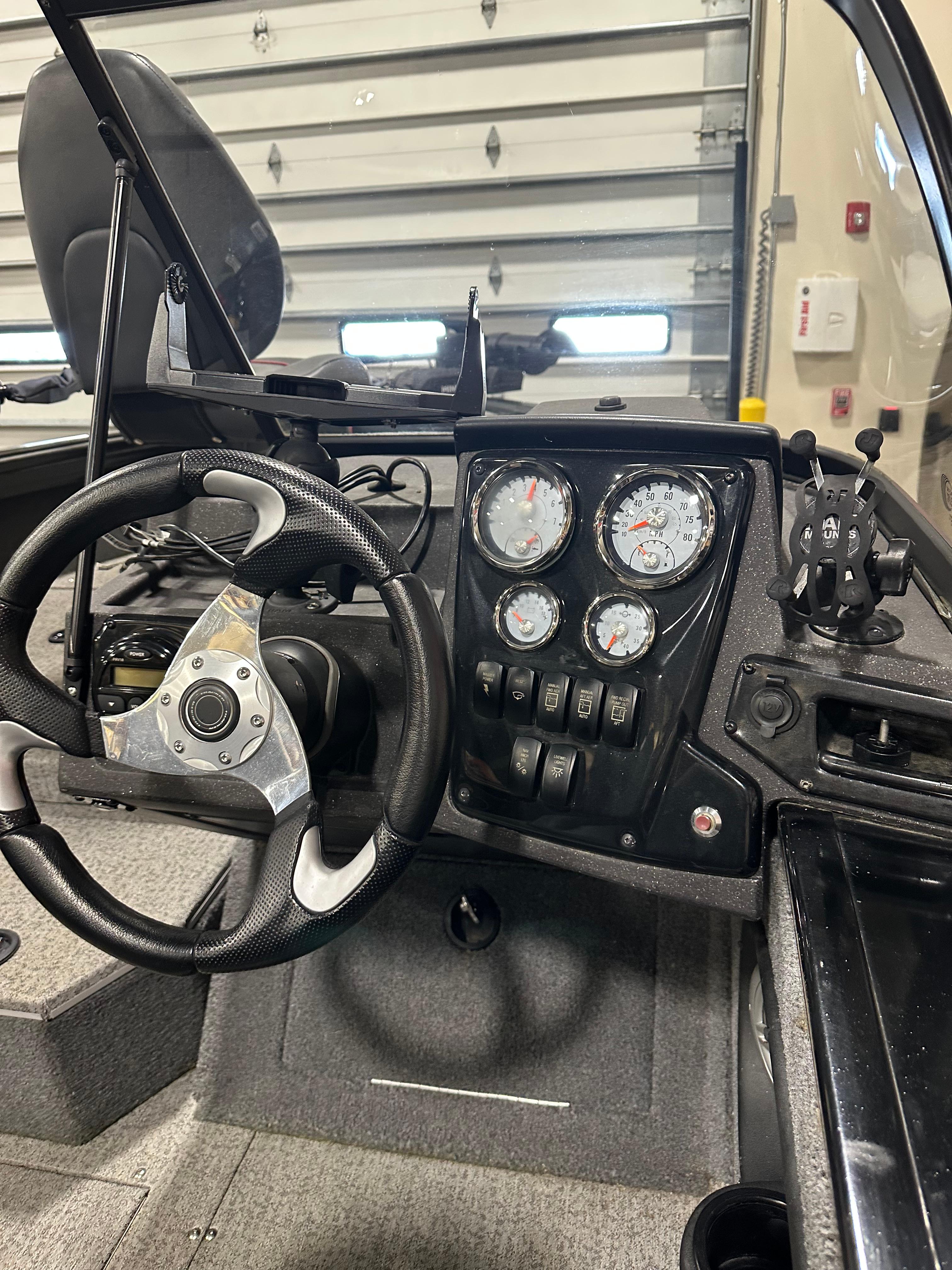 • Bow panel w/trolling motor receptacle, 12V outlet, bow aerator switch & trim switch