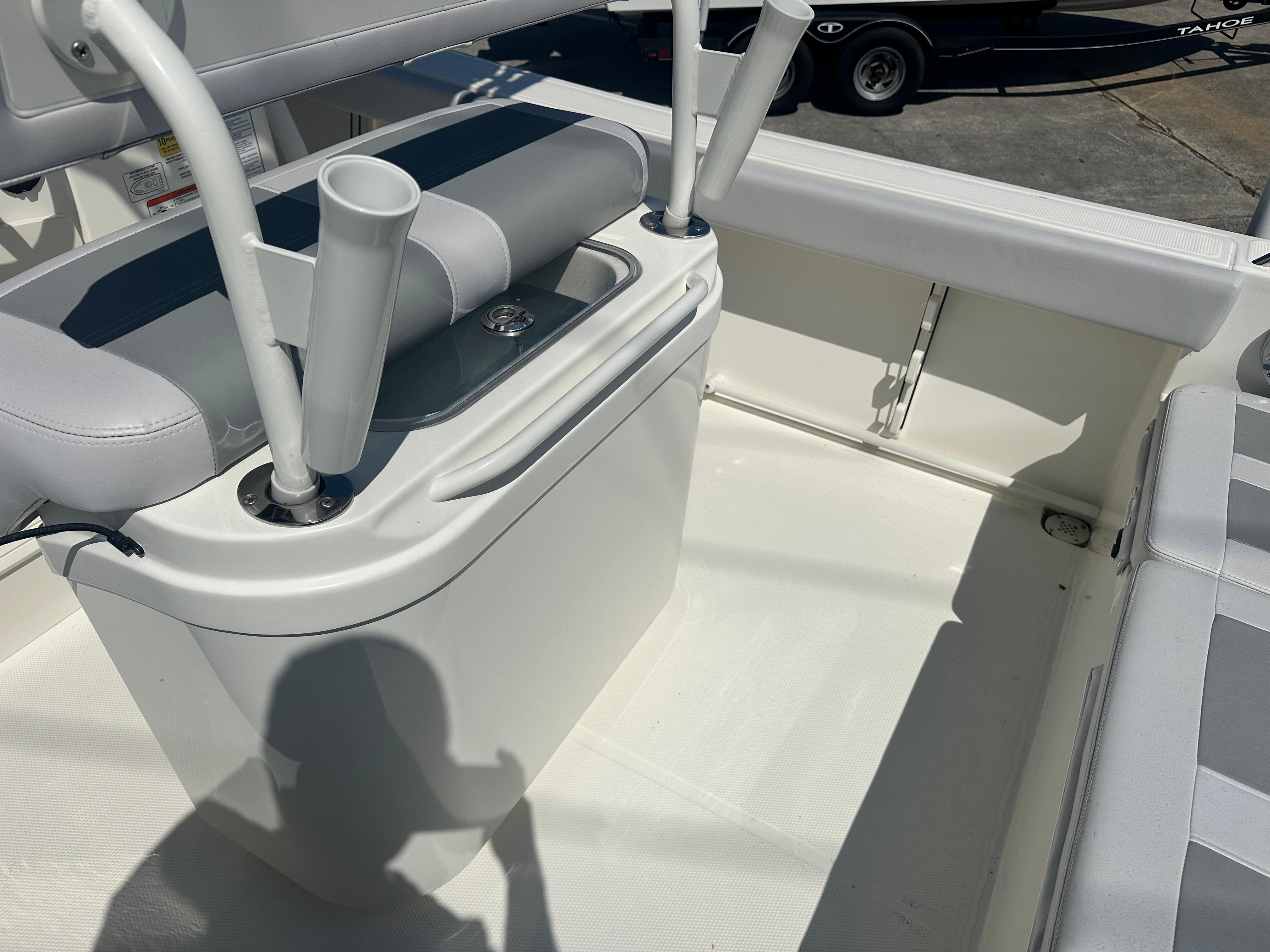 • Port & starboard forward seats w/108-qt. (102.21 L) insulated storage below w/gravity overboard drainage