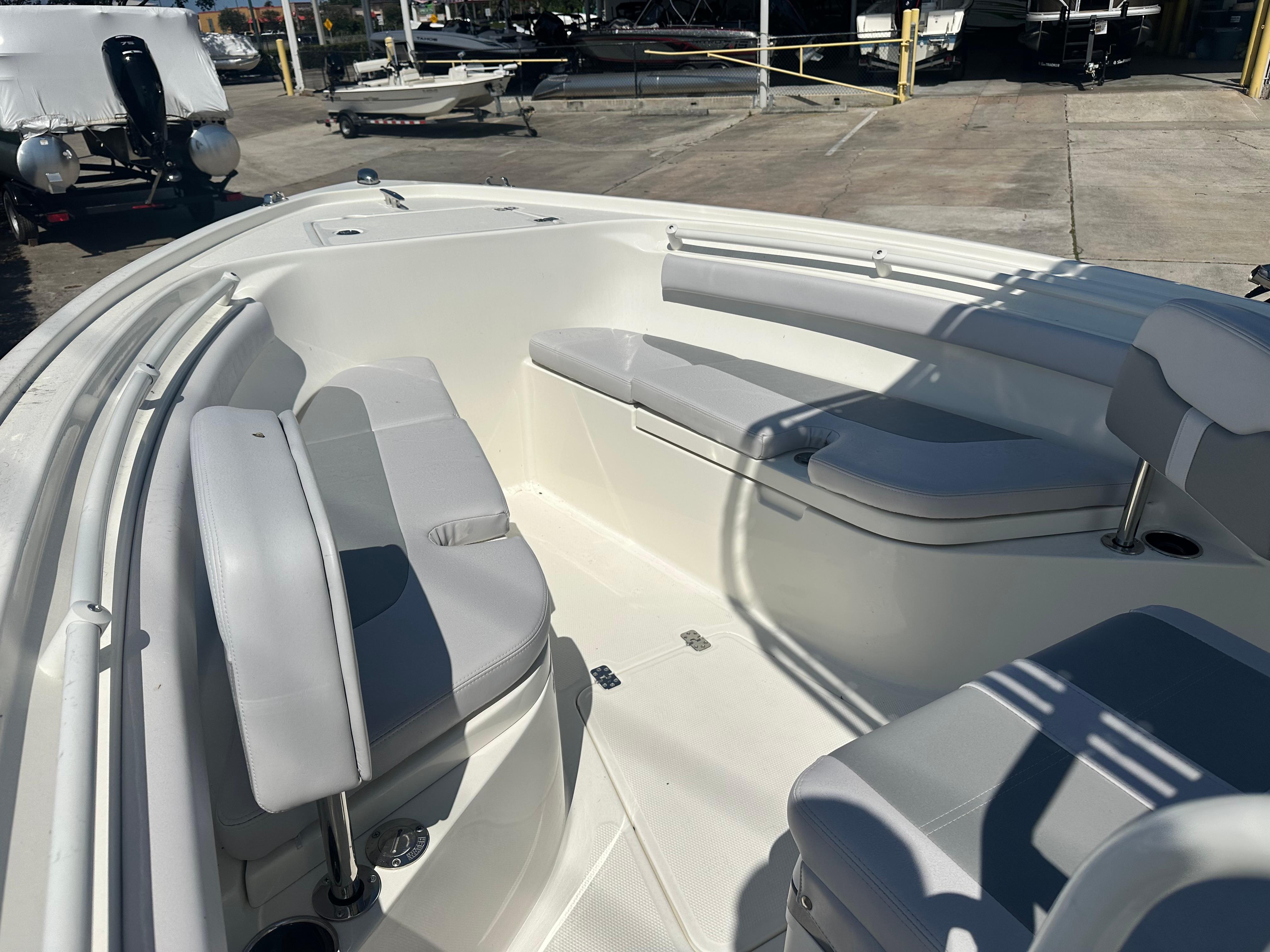 • Port & starboard bow seating w/108-qt. (102.21 L) insulated storage below & gravity overboard drains