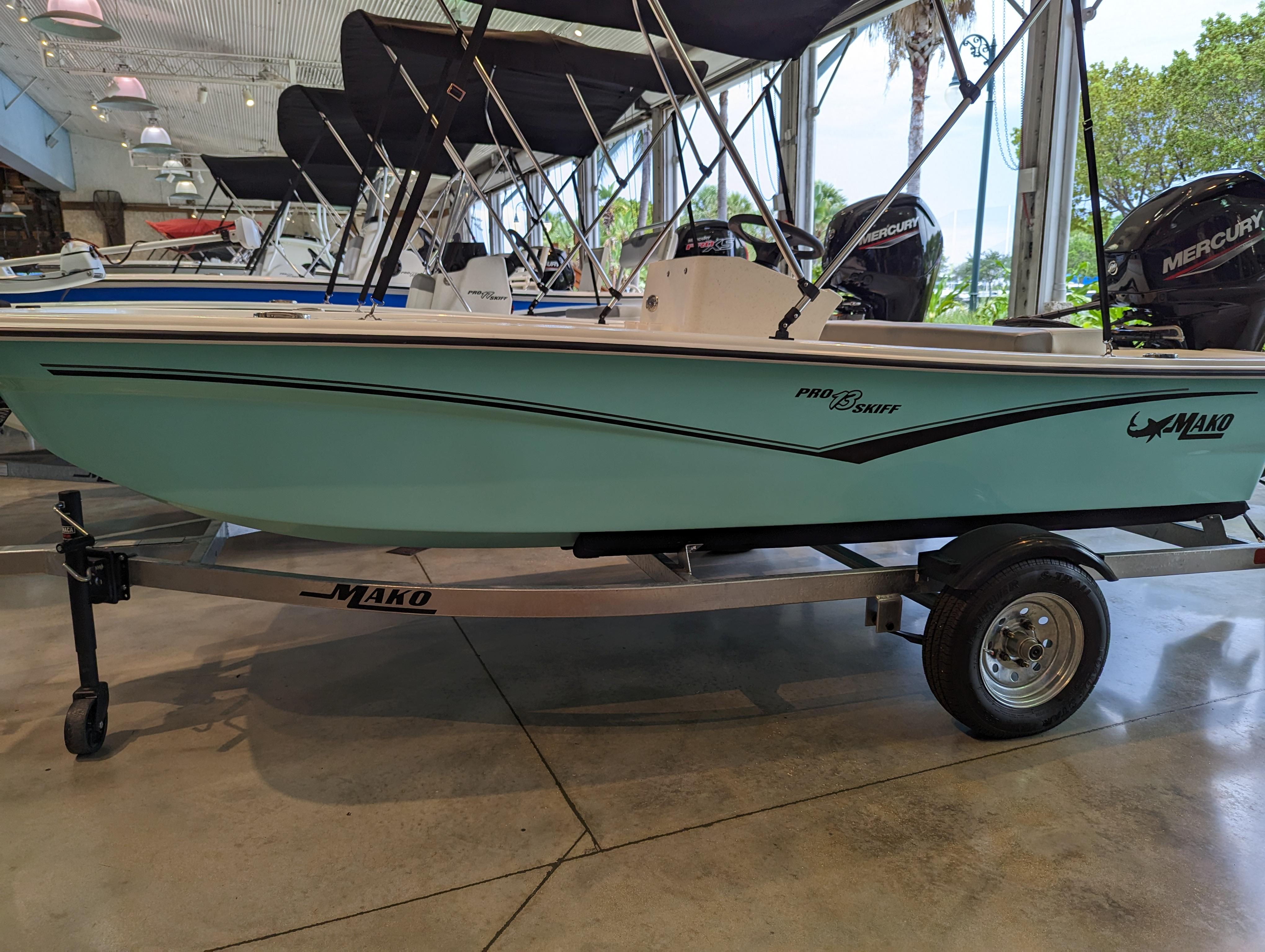 The newest addition to the MAKO fleet boasts all the heritage, quality, and trusted performance of its larger siblings in a super shallow-drafting, easy-to-maneuver package. It features all the MAKO Pro Skiff DNA in our smallest package ever with a wide footprint that delivers a trio of advantages: A super stable casting platform, 8” draft, and maximized interior storage. Its size and slides easily onto sandbars and into marine slips and is the perfect starter boat for those just venturing out into saltwater. Topping this package off is reliable and economical Mercury FourStroke power that’s ready to take you across the skinniest flats.