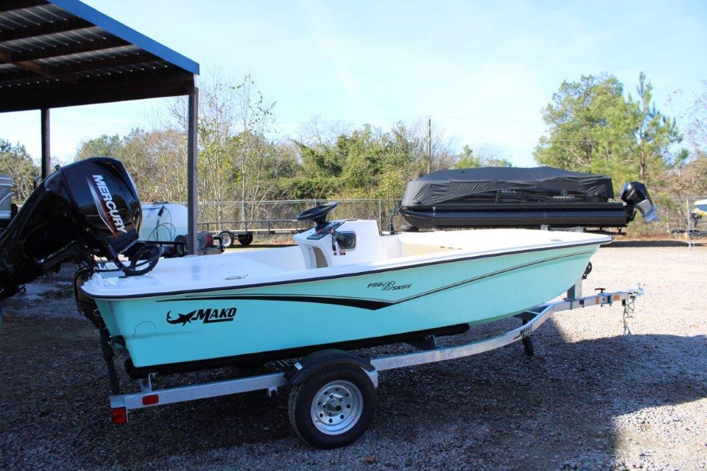 The newest addition to the MAKO fleet boasts all the heritage, quality, and trusted performance of its larger siblings in a super shallow-drafting, easy-to-maneuver package. It features all the MAKO Pro Skiff DNA in our smallest package ever with a wide footprint that delivers a trio of advantages: A super stable casting platform, 8” draft, and maximized interior storage. Its size and slides easily onto sandbars and into marine slips and is the perfect starter boat for those just venturing out into saltwater. Topping this package off is reliable and economical Mercury FourStroke power that’s ready to take you across the skinniest flats.