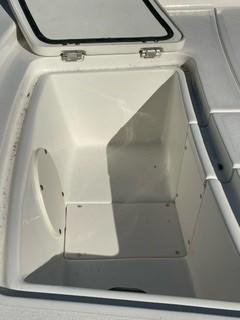 • 1-piece gelcoated fiberglass deck liner injected w/expanding closed-cell foam for flotation, added strength & a quiet ride