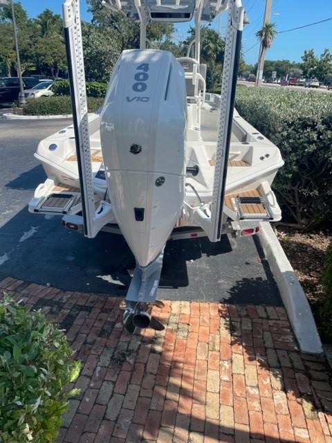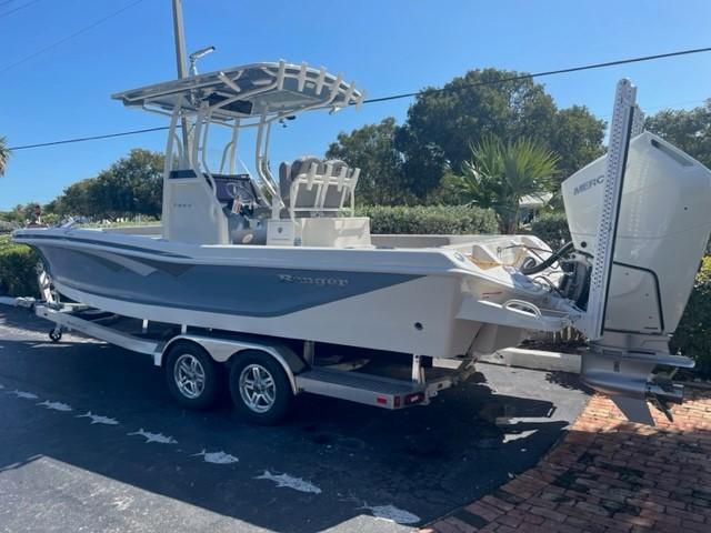 The 2660 Bay Ranger builds on Ranger’s sterling lineup of bay boats with a new hull, expanded capability and an extreme attention to detail to deliver incredible performance and fishability to pursue saltwater species around the globe. Twin rod storages and a massive fish box highlight the angler-centric front deck that is ideal for casting jigs or nets. Live bait rides behind the helm seat and/or in the front deck step for quick access to keep the bite going while rod holders throughout keep your gear handy. A rear swim platform and optional front-deck cushions add versatility to the 2660 for a family-oriented outing, but when it’s time to get after the fish the 400-horsepower rating offers excitement on demand. The Ranger 2660 boasts ample muscle for all of your blue water quests.