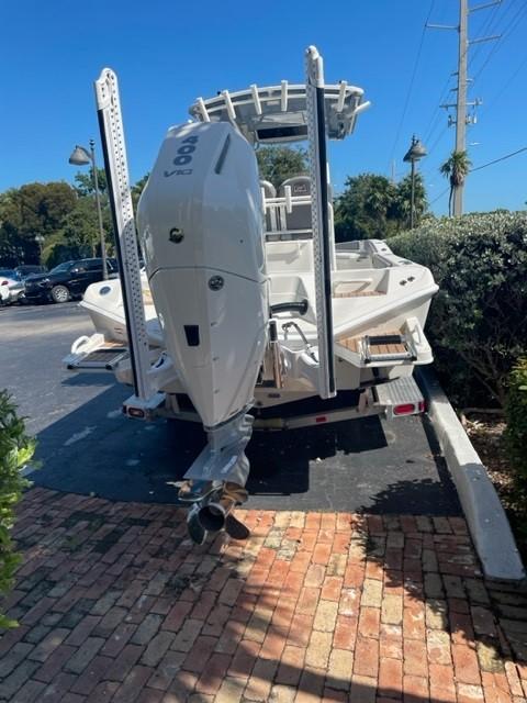 • Custom-fitted premium marine upholstery: leaning post w/ 40 gal. baitwell & added storage