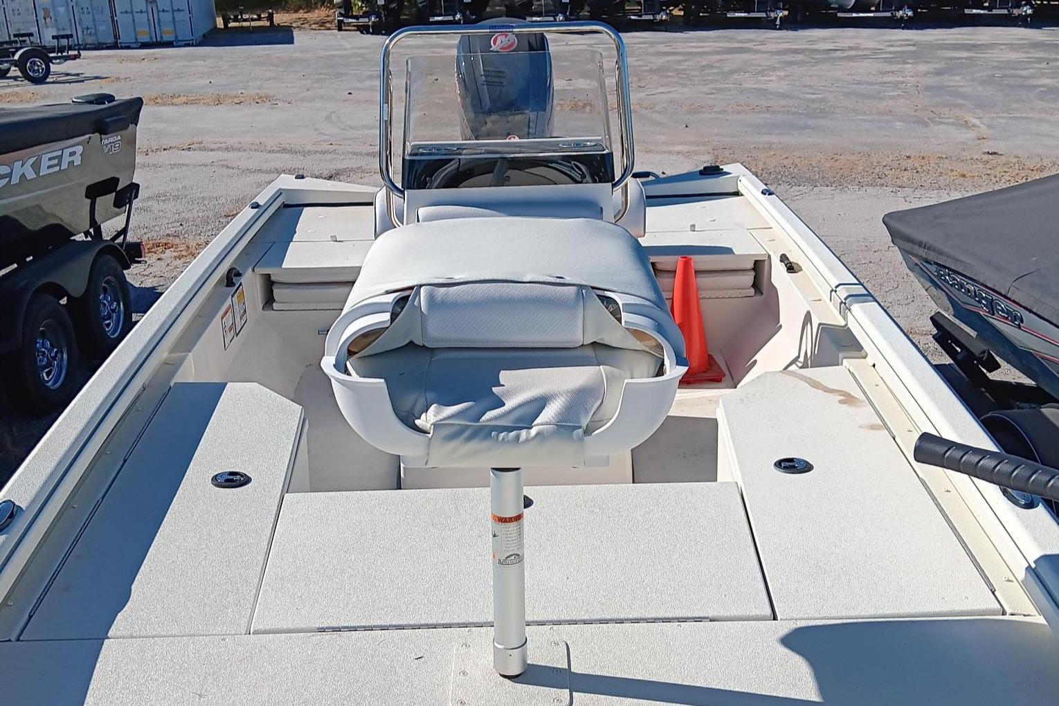 • Custom fitted marine upholstery: aluminum leaning post, (1) fold down, (1) bike, dual jump Seats