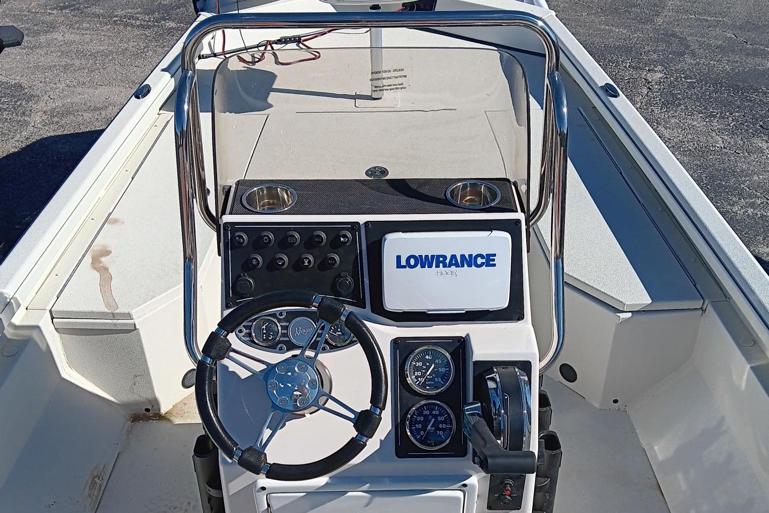 Included Options - Custom Boat Cover, Minn Kota Riptide Maxxum 80lb Hand Control T/M, Lowrance Hook Reveal 7 @ Console
