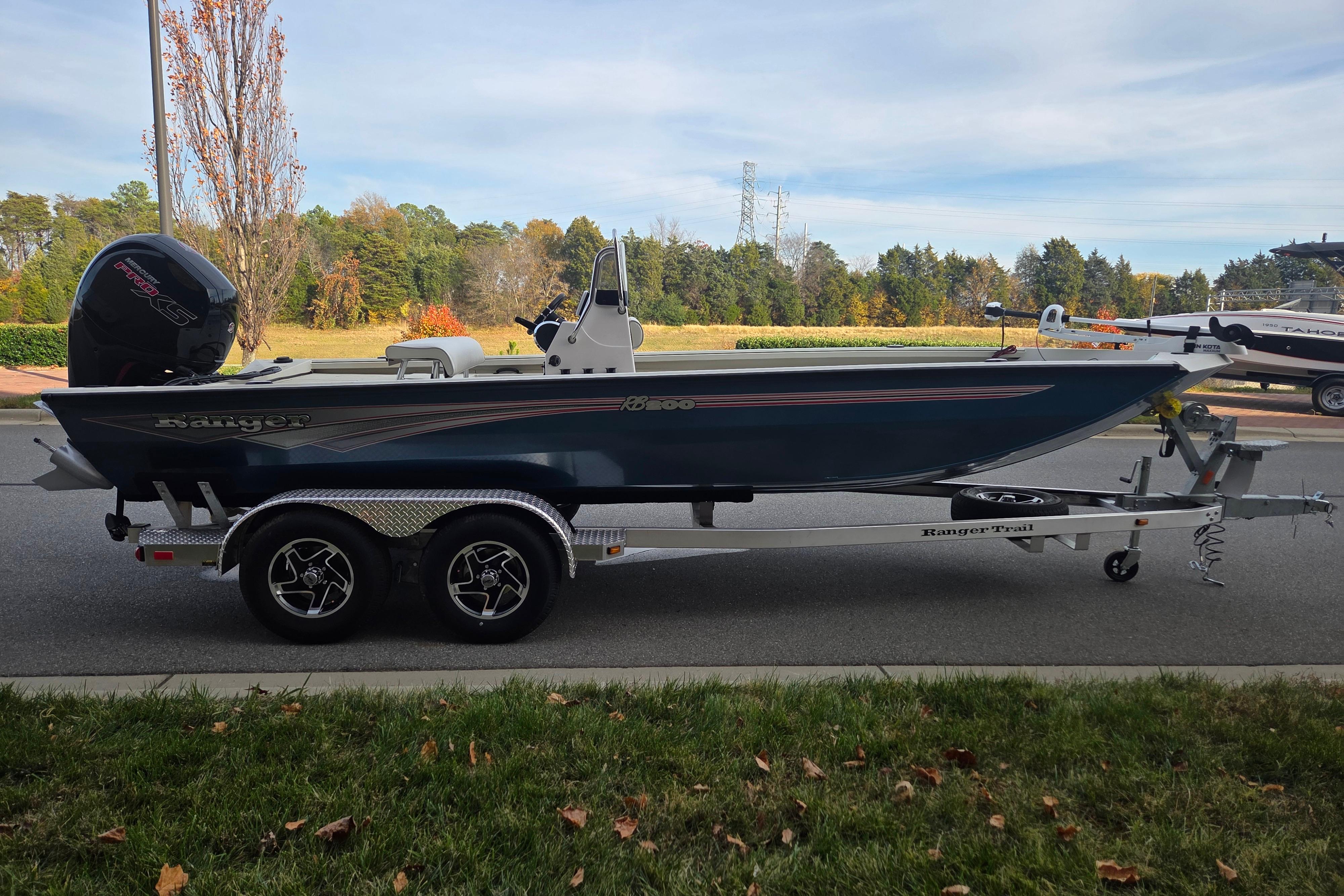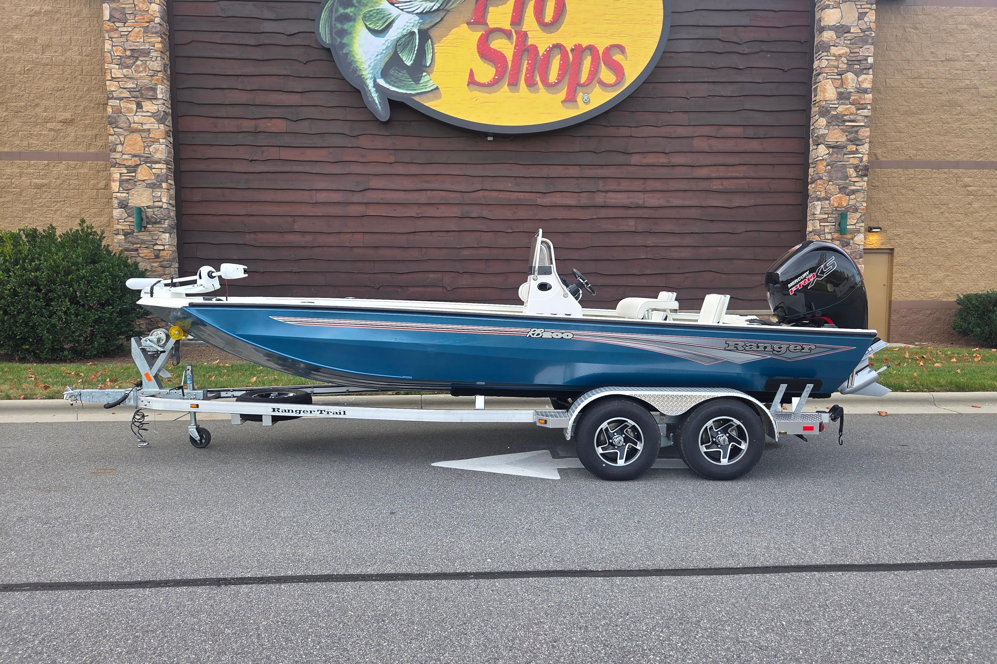 The RB200 packs more muscle in a bigger hull for greater performance, stability and capability to take you further than ever. The pad-bottom hull is designed for a dry ride that planes in a hurry, even in the shallows. The all-welded hull delivers strength in chop while precision steering and throttle control give you the ultimate in command. The wide, stable front casting deck delivers huge room for multiple anglers, and the interior is perfectly tailored for taking on inshore fisheries or a bass tournament with dual livewells and rod boxes, a huge in-deck storage and storage under the rear jump seats. At the helm, electronics up to 9" may be flush mounted and membrane-style switching delivers convenient simplicity. The ruggedized Ranger Trail® trailer is constructed with all-welded aluminum for the utmost in corrosion-resistant strength. Diamond plate fenders offer a step up and protection from road debris. A new camo version is more than just a paint scheme, this special rig features blacked-out badging, matte black closures and console railing, along with an all-black steering wheel for maximum concealment. No matter where your quarry swims, the enhanced capability of the RB200 is designed to Dominate Inshore and Nearshore.