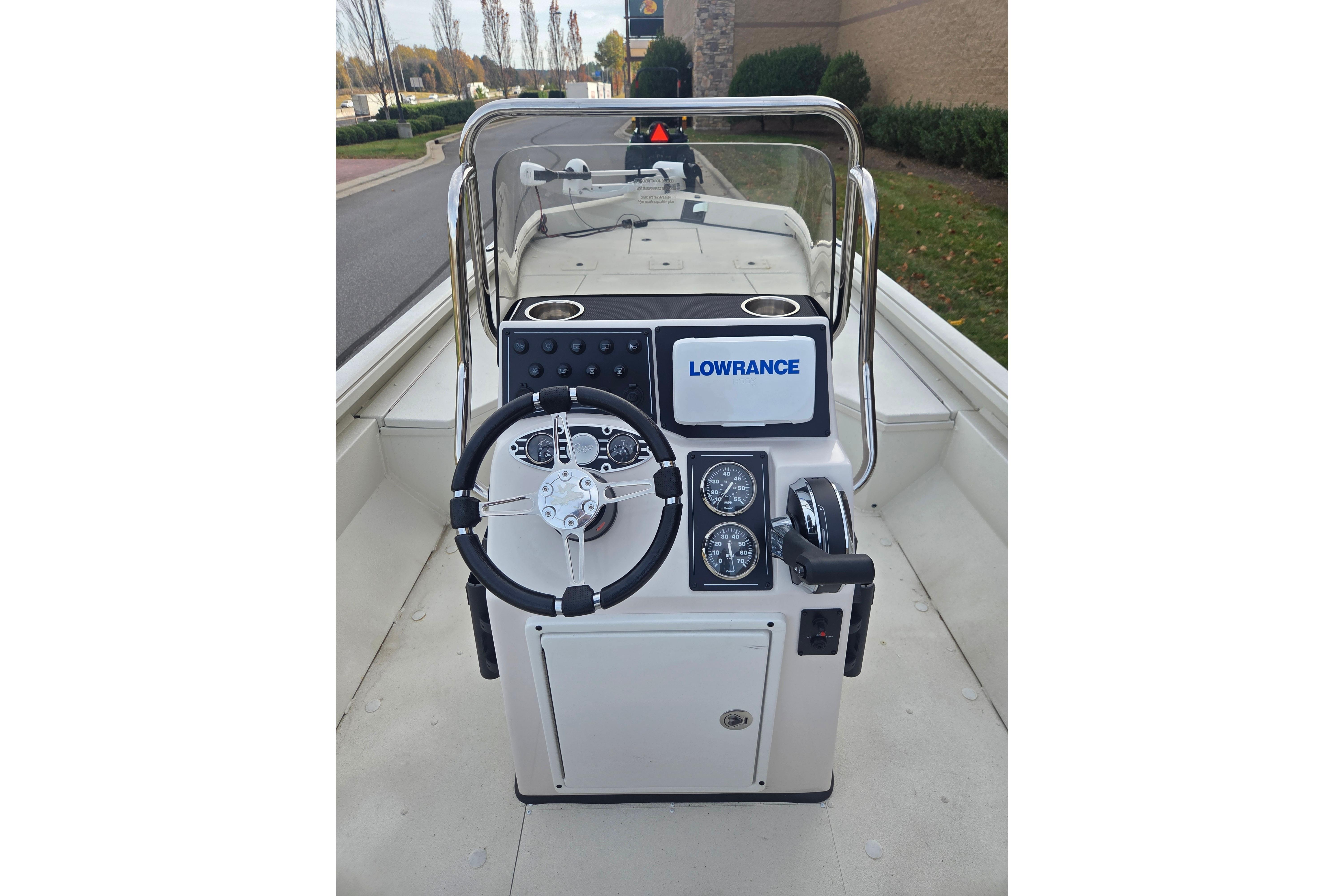 • Custom fiberglass console w/ tach, speed, fuel, trim gauges & easy touch switching