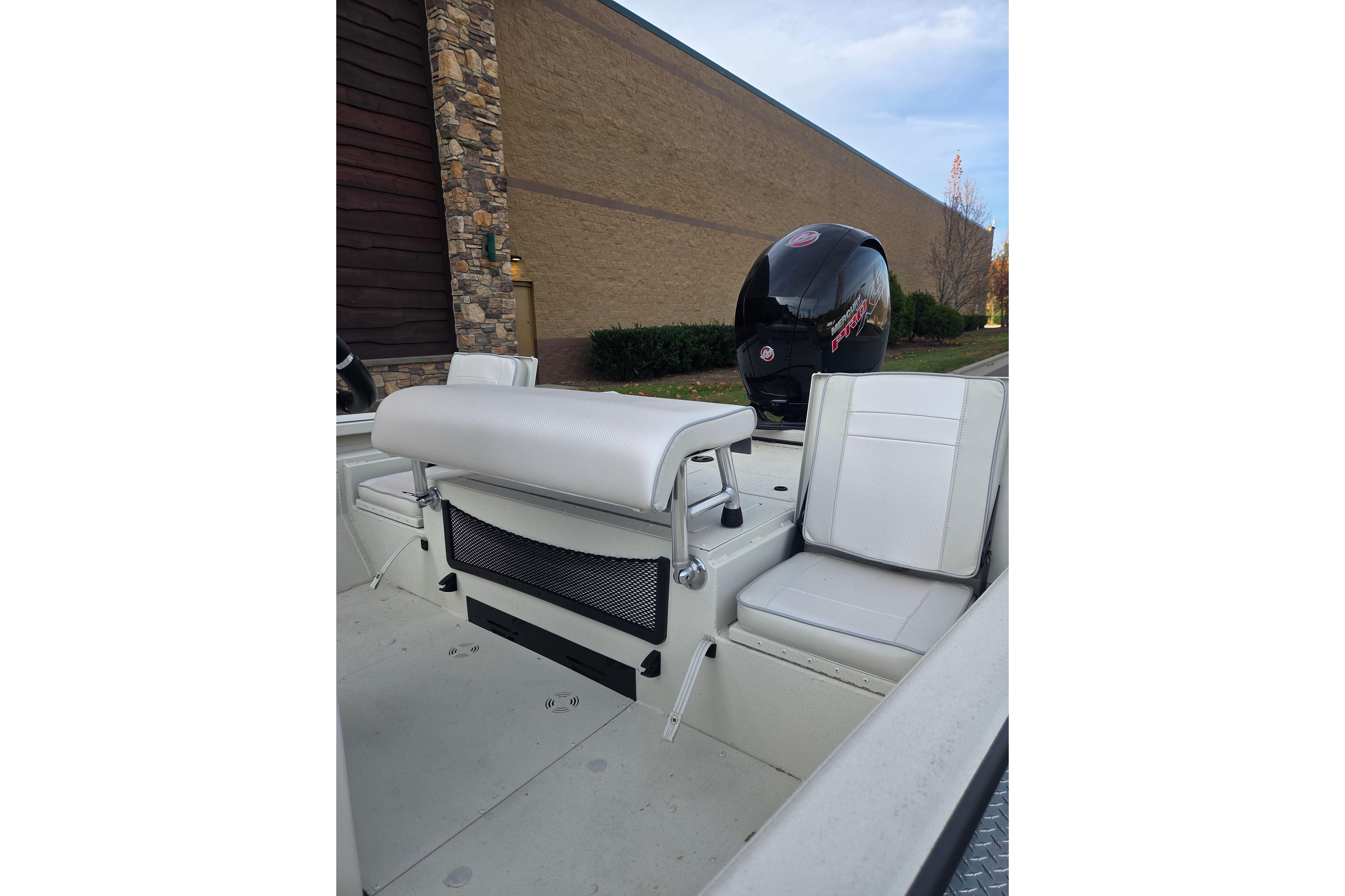 • Custom fitted marine upholstery: aluminum leaning post, (1) fold down, (1) bike, dual jump Seats