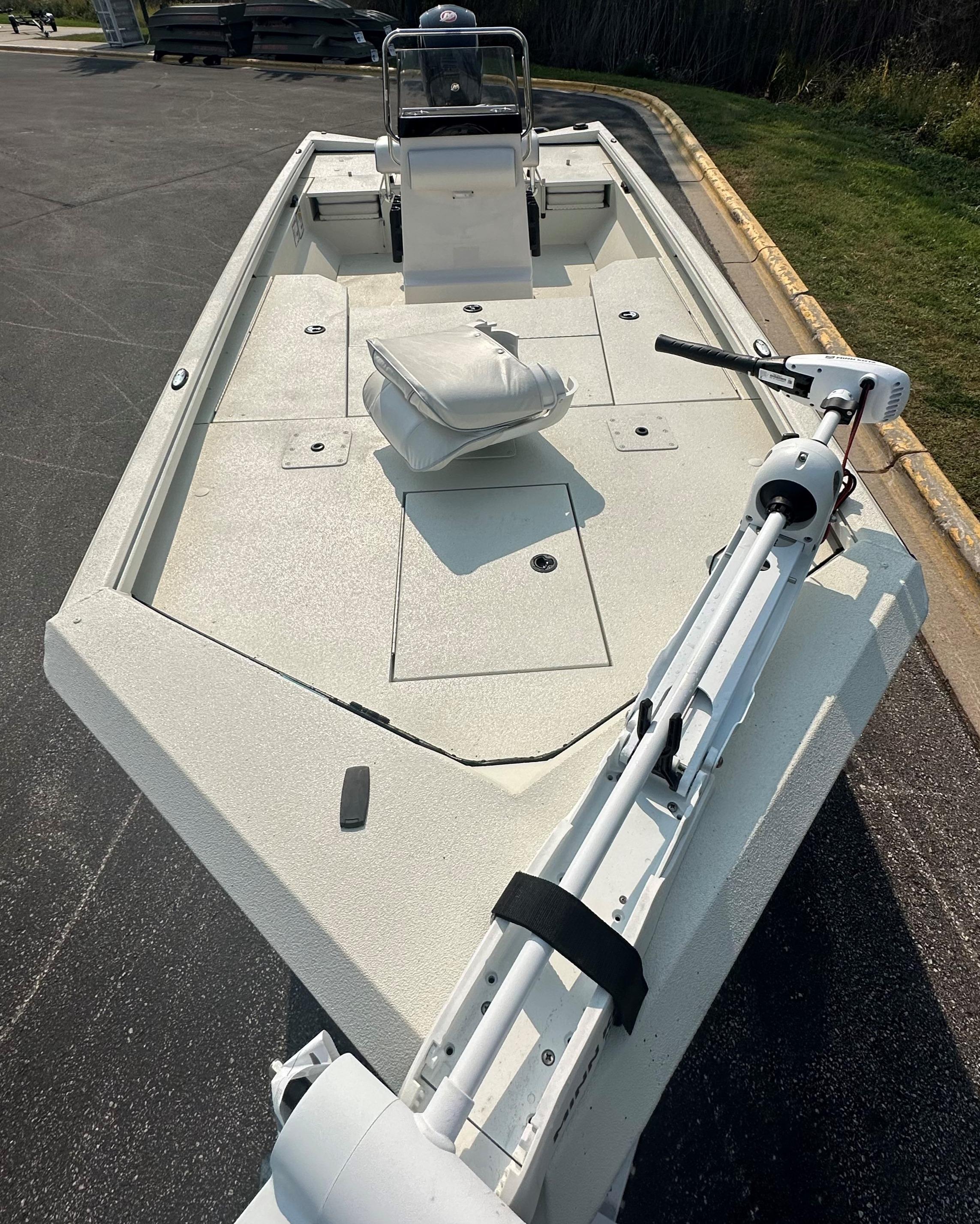 The RB200 packs more muscle in a bigger hull for greater performance, stability and capability to take you further than ever. The pad-bottom hull is designed for a dry ride that planes in a hurry, even in the shallows. The all-welded hull delivers strength in chop while precision steering and throttle control give you the ultimate in command. The wide, stable front casting deck delivers huge room for multiple anglers, and the interior is perfectly tailored for taking on inshore fisheries or a bass tournament with dual livewells and rod boxes, a huge in-deck storage and storage under the rear jump seats. At the helm, electronics up to 9" may be flush mounted and membrane-style switching delivers convenient simplicity. The ruggedized Ranger Trail® trailer is constructed with all-welded aluminum for the utmost in corrosion-resistant strength. Diamond plate fenders offer a step up and protection from road debris. A new camo version is more than just a paint scheme, this special rig features blacked-out badging, matte black closures and console railing, along with an all-black steering wheel for maximum concealment. No matter where your quarry swims, the enhanced capability of the RB200 is designed to Dominate Inshore and Nearshore.