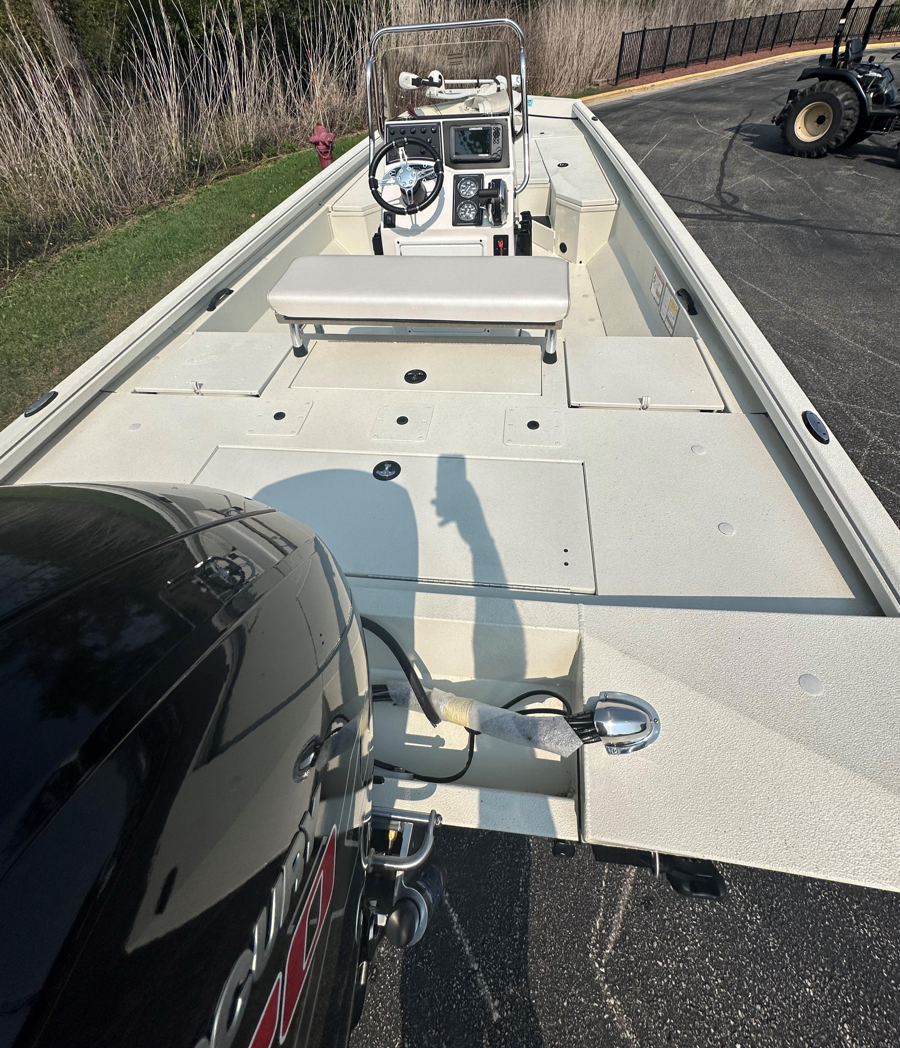 • Custom fitted marine upholstery: aluminum leaning post, (1) fold down, (1) bike, dual jump Seats