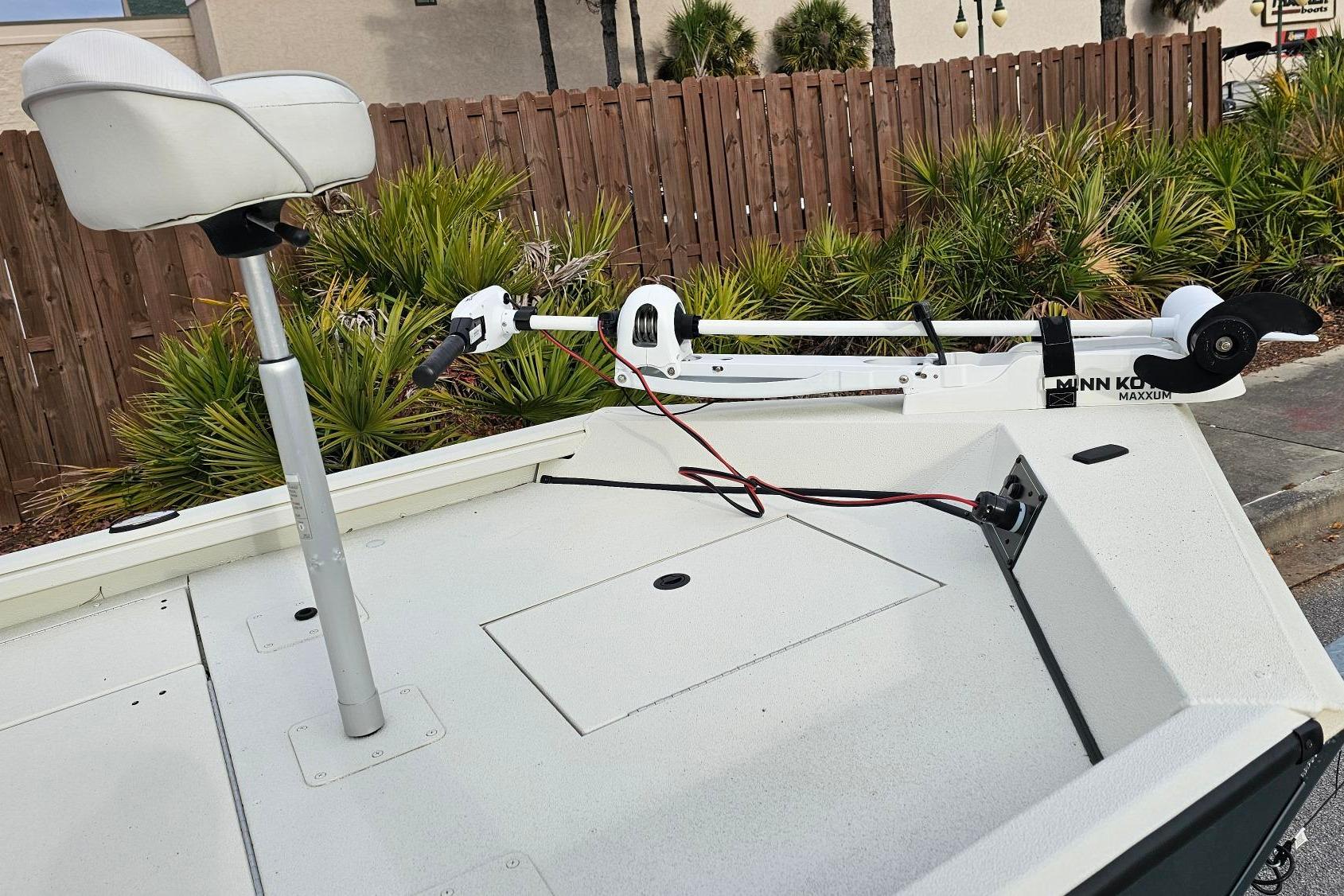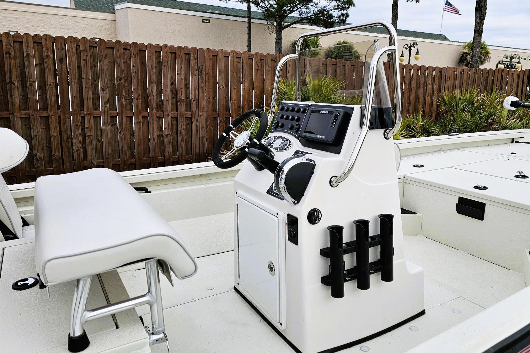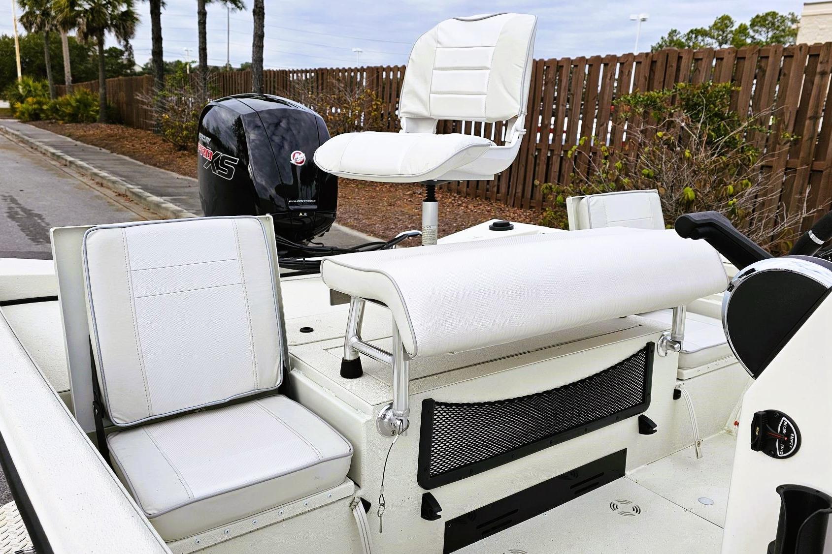 • Custom fitted marine upholstery: aluminum leaning post, (1) fold down, (1) bike, dual jump Seats