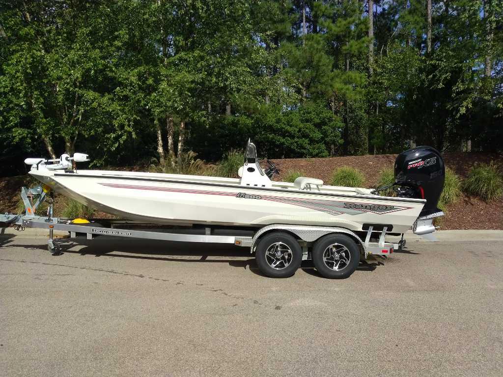 The RB200 packs more muscle in a bigger hull for greater performance, stability and capability to take you further than ever. The pad-bottom hull is designed for a dry ride that planes in a hurry, even in the shallows. The all-welded hull delivers strength in chop while precision steering and throttle control give you the ultimate in command. The wide, stable front casting deck delivers huge room for multiple anglers, and the interior is perfectly tailored for taking on inshore fisheries or a bass tournament with dual livewells and rod boxes, a huge in-deck storage and storage under the rear jump seats. At the helm, electronics up to 9" may be flush mounted and membrane-style switching delivers convenient simplicity. The ruggedized Ranger Trail® trailer is constructed with all-welded aluminum for the utmost in corrosion-resistant strength. Diamond plate fenders offer a step up and protection from road debris. A new camo version is more than just a paint scheme, this special rig features blacked-out badging, matte black closures and console railing, along with an all-black steering wheel for maximum concealment. No matter where your quarry swims, the enhanced capability of the RB200 is designed to Dominate Inshore and Nearshore.
