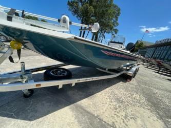 The all-new RB210 packs more muscle in a bigger hull for greater performance, stability and capability to take you further than ever. The pad-bottom hull is designed for a dry ride that planes in a hurry, even in the shallows. The all-welded hull delivers strength in chop while precision steering and throttle control give you the ultimate in command. The wide, stable front casting deck delivers huge room for multiple anglers, and the interior is perfectly tailored for taking on inshore fisheries or a bass tournament with dual livewells and rod boxes, a huge in-deck storage and storage under the rear jump seats. At the helm, electronics up to 9" may be flush mounted and membrane-style switching delivers convenient simplicity. The ruggedized Ranger Trail® trailer is constructed with all-welded aluminum for the utmost in corrosion-resistant strength. Diamond plate fenders offer a step up and protection from road debris. A new camo version is more than just a paint scheme, this special rig features blacked-out badging, matte black closures and console railing, along with an all-black steering wheel for maximum concealment. No matter where your quarry swims, the enhanced capability of the RB210 is designed to Dominate Inshore and Nearshore.