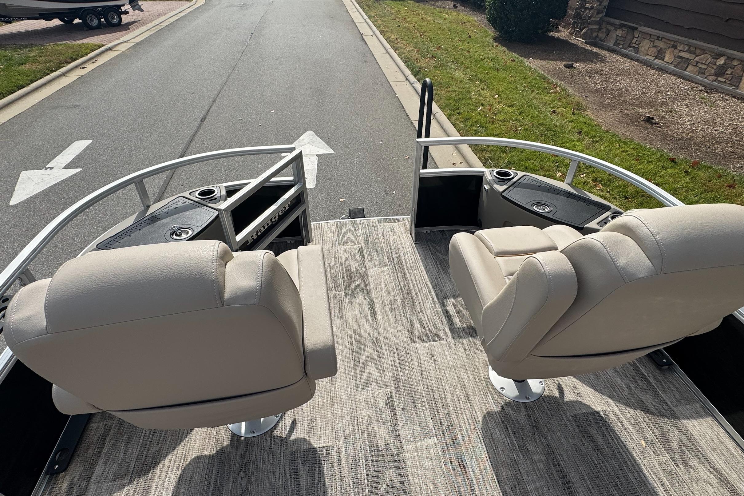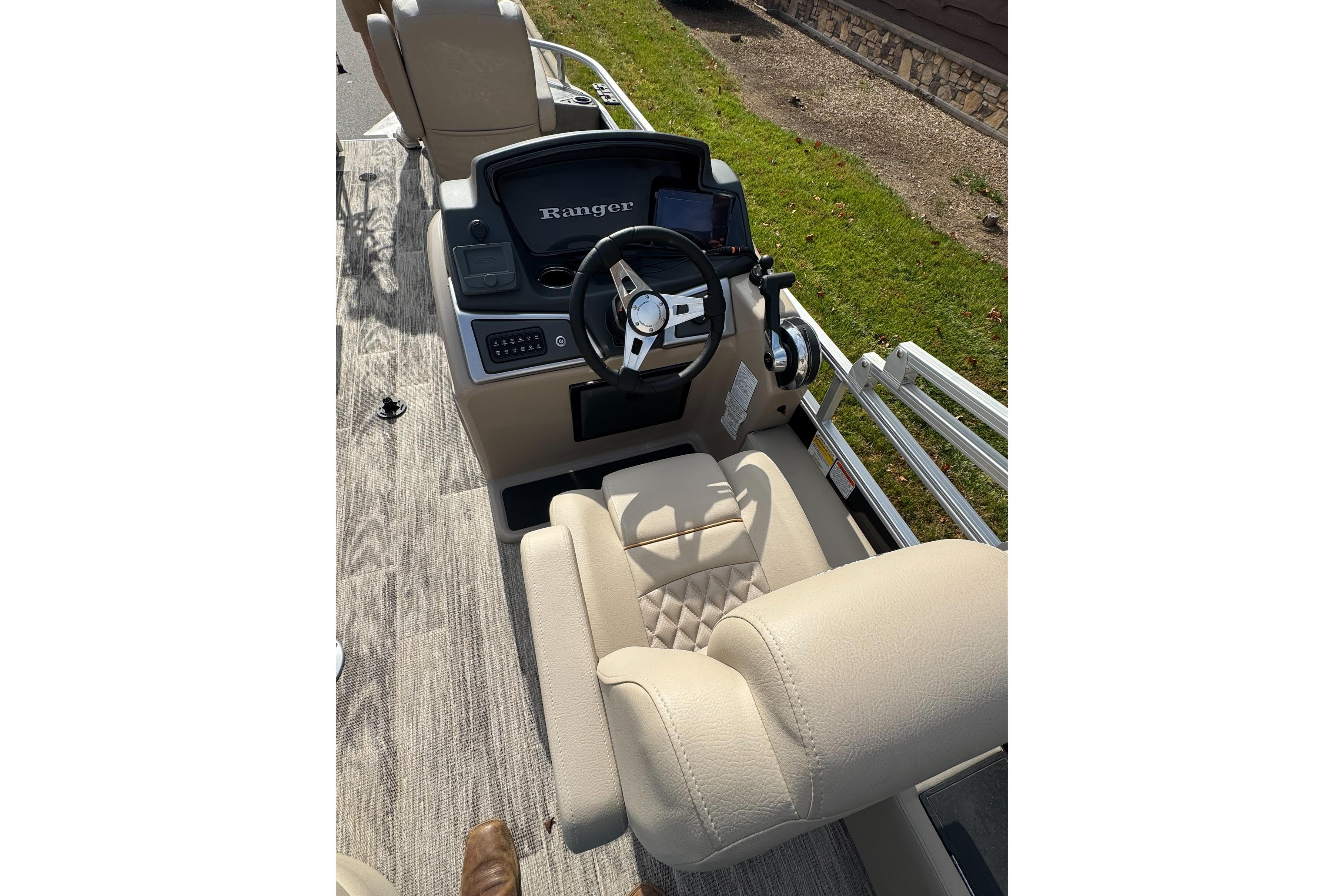 The Ranger® Reata® 220F blends the best qualities of a purpose-built leisure craft with a multitude of fishing-savvy touches. A 7-foot, 6-inch rod box with organizer graces the starboard side while fore and aft livewells keep bait – or your catch – close at hand. In between all this angling goodness is a plush lounge with a pair of rear-facing seats and a captain’s chair with self-leveling arms behind a fiberglass console with a full array of gauges. When it comes to setting the hook or settling down, the 220F is ideally appointed for casting or cruising.