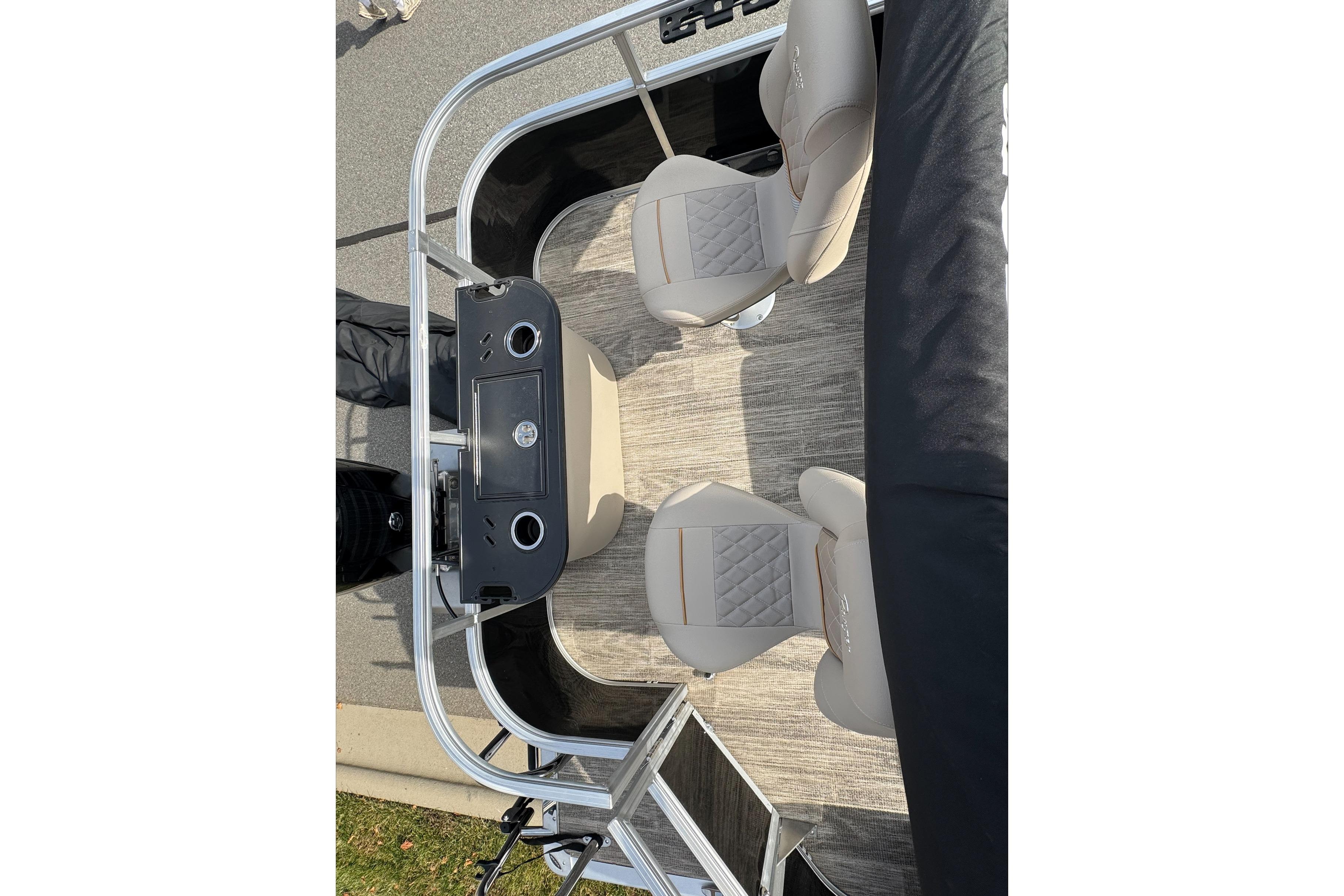• 2 fore deluxe adjustable, swiveling & reclining fishing chairs w/ self-leveling arms & storage pouch & 2 aft fold-down, swiveling fishing chairs