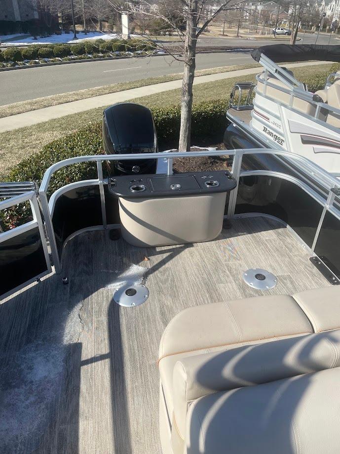 • Stylish deck trim w/ rub rail & highly polished aft corner castings