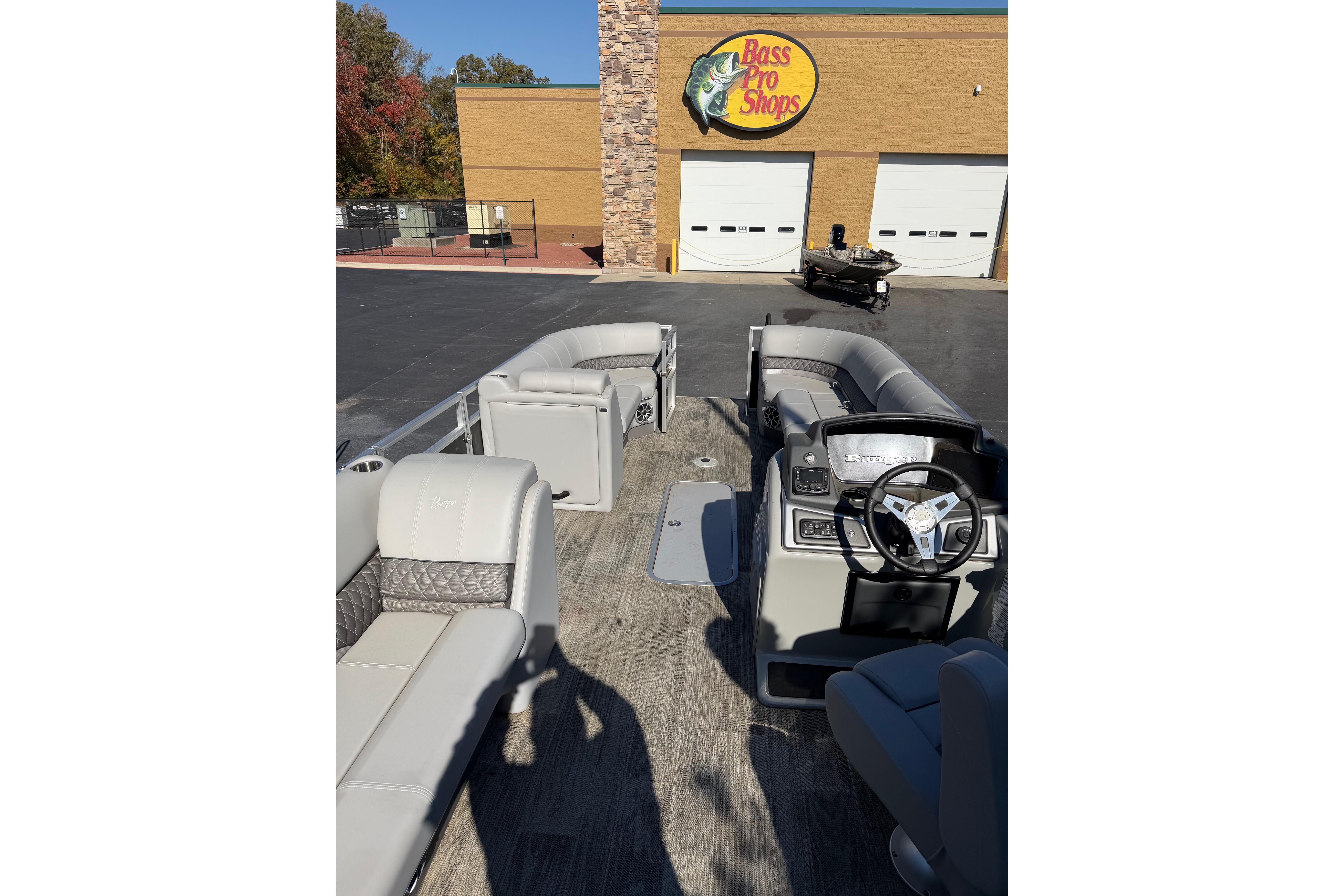 Smooth, solid power, refined luxury and maximum convenience define the Ranger® Reata® 223C. With three powder-coated pontoons, hand-crafted seating and a Dowco EasyLift™ 10-foot Bimini top, this pontoon is ready to move you in comfort and style. A full-width rear swim platform with boarding ladder are adjacent to the PowerPod™ motor extension that delivers enhanced performance and a quieter ride. Within the redesigned gates is luxury from top to bottom, from the soft-touch woven flooring to the extra-plush lounges and overstuffed captain’s chair. Storage beneath every seat and under the console easily hold a day’s worth of gear while a 200-horsepower rating ramps up excitement on demand. With so much capability, the Ranger 223C delivers high performance, even at 0 MPH.