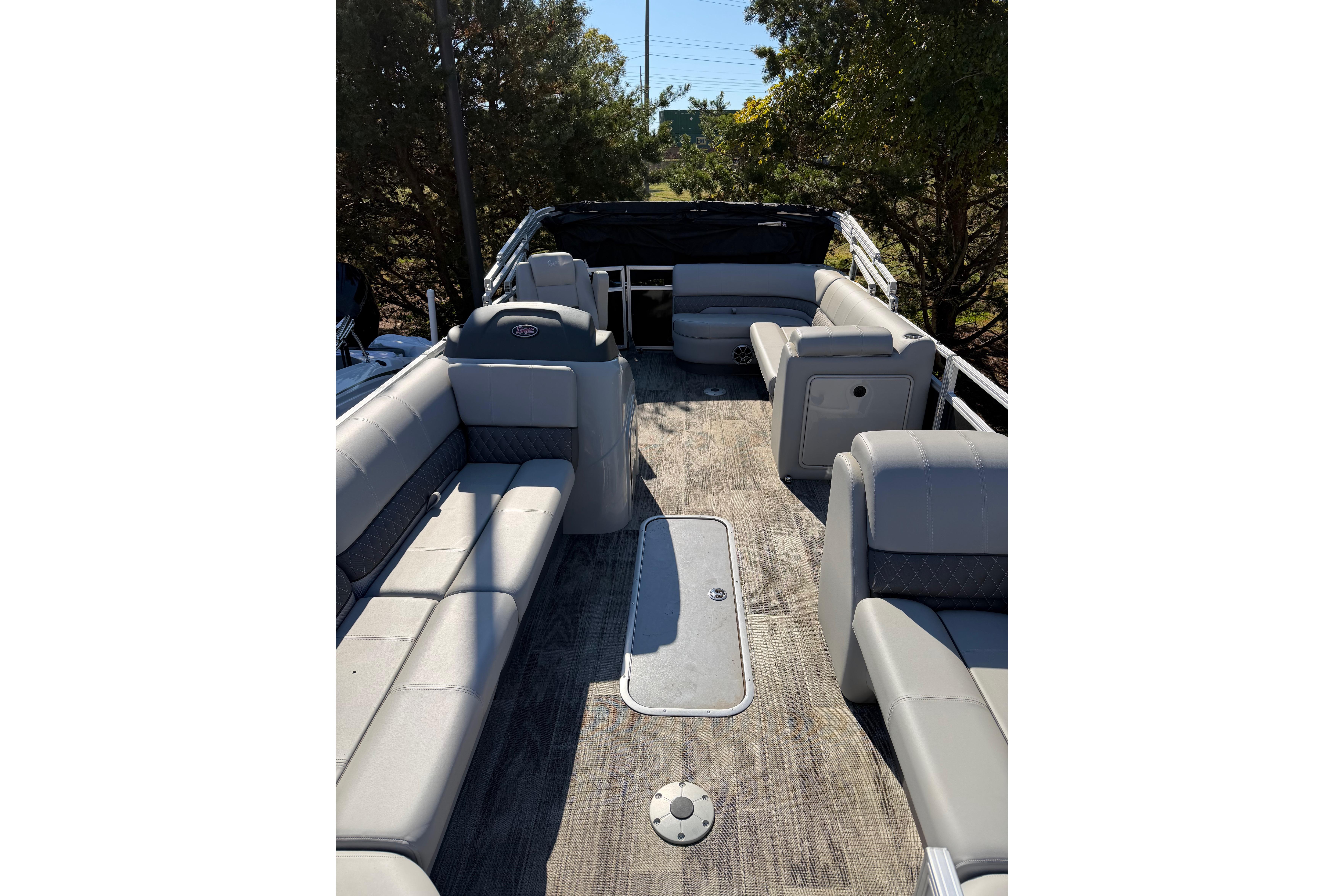 • Plush port & starboard bow lounges w/ rotomolded, drained storage