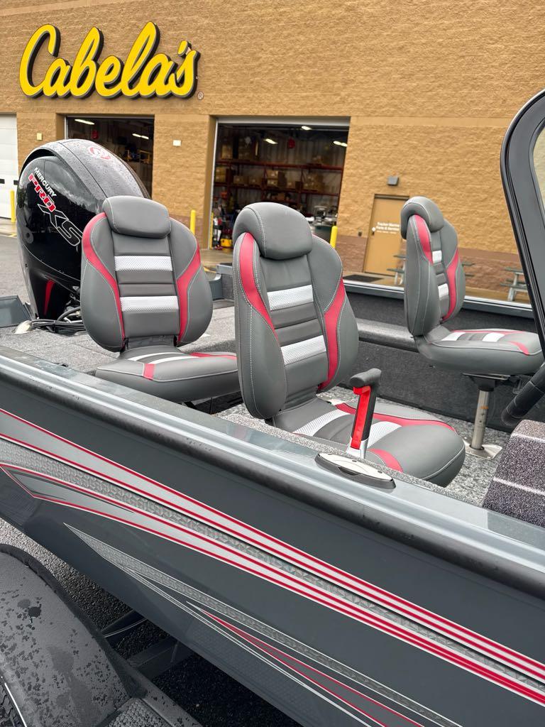 • Custom fitted marine upholstery- (3) matching fishing seats, driver seat slides