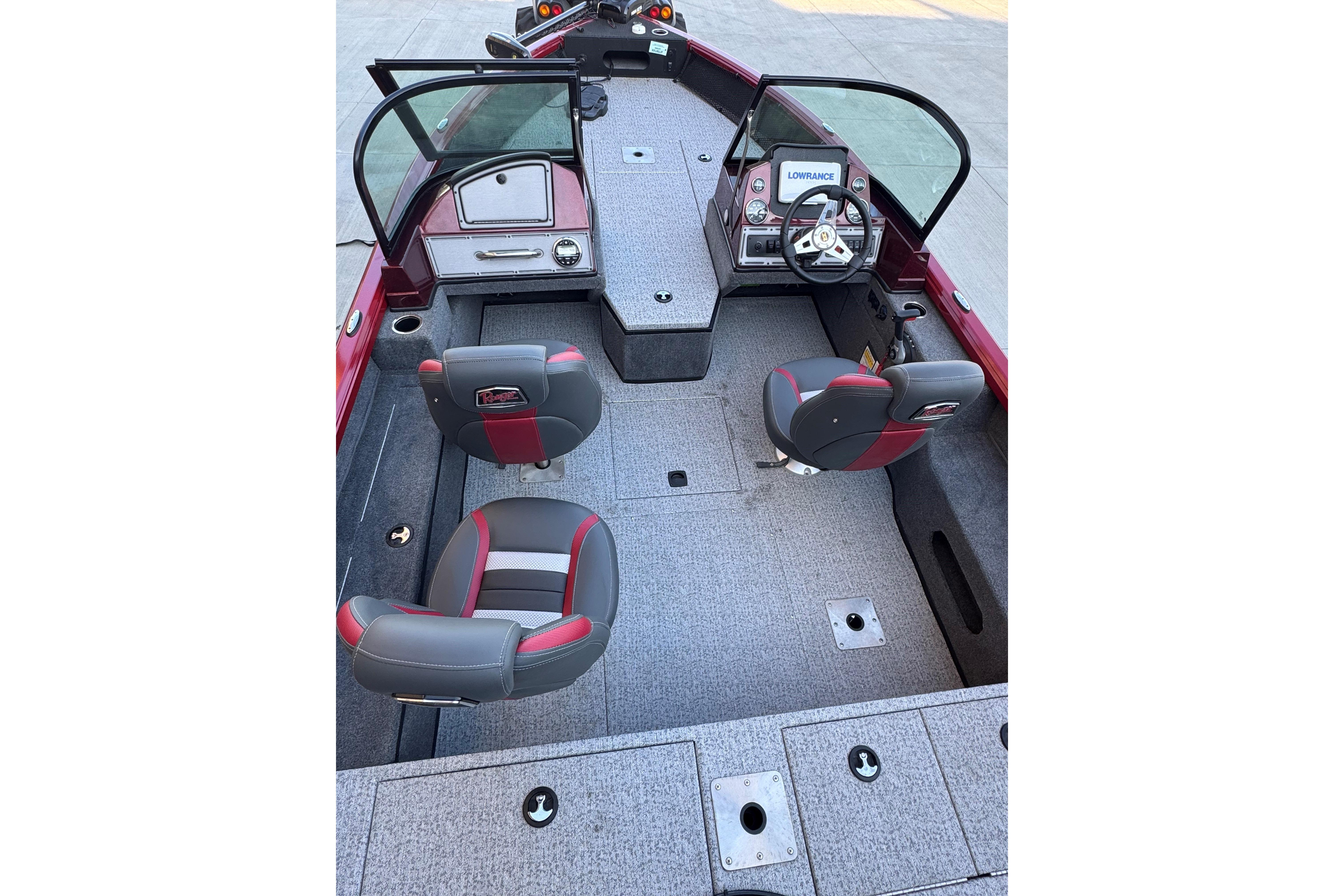 • Custom fitted marine upholstery- (3) matching fishing seats, driver seat slides