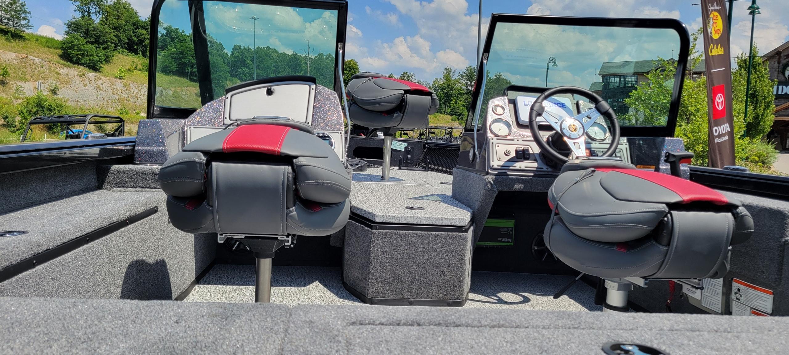 • Custom fitted marine upholstery- (3) matching fishing seats, driver seat slides