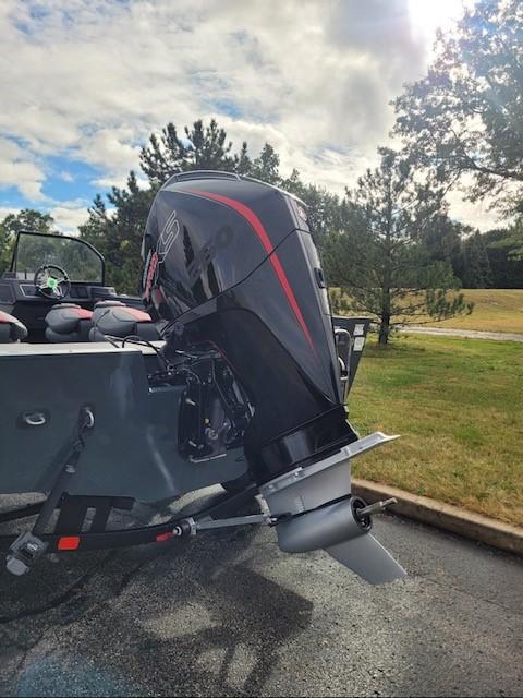 Options include 36V Minn Kota Ulterra trolling motor, Helix 10 at console, Helix 10 at bow, a 4 bank battery charger and a custom fit cover!